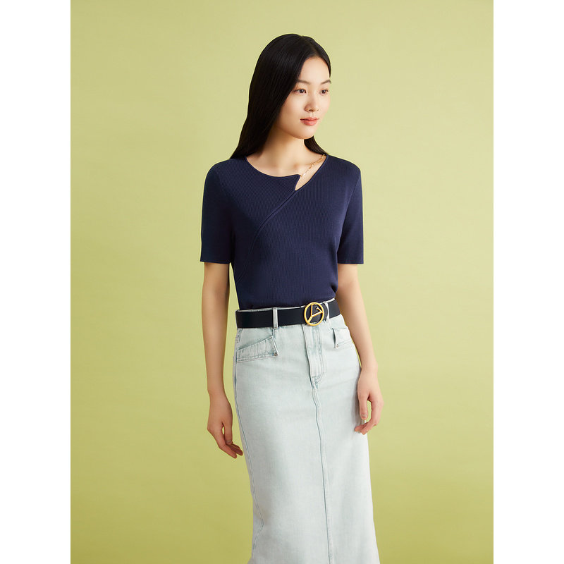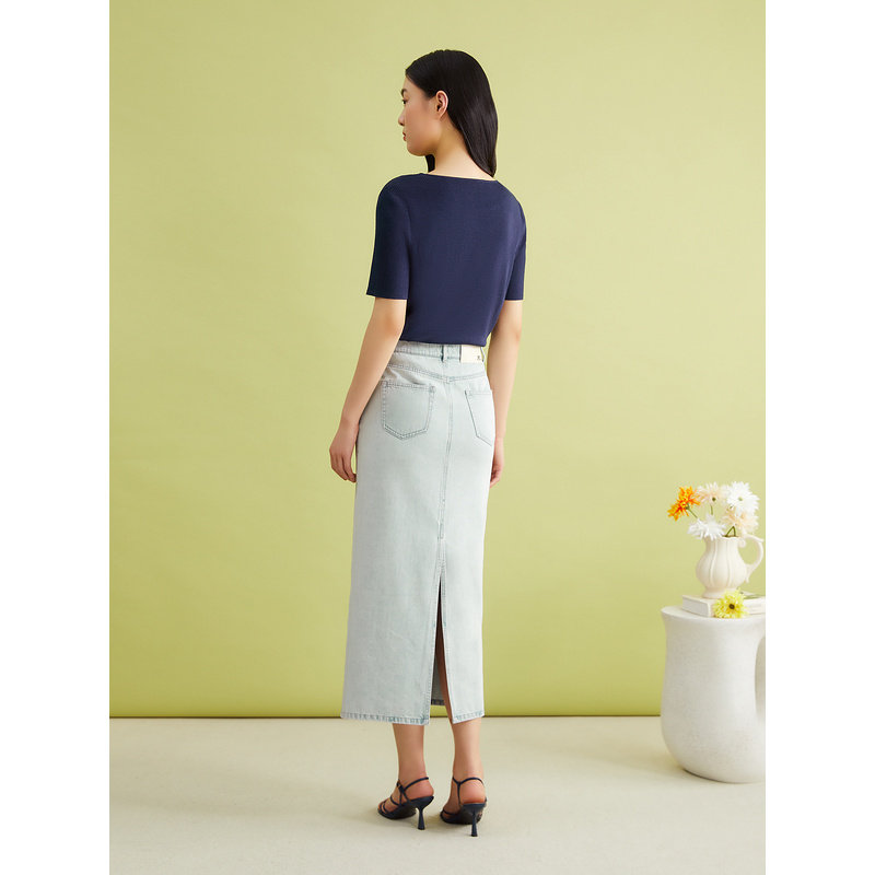 YINER音儿女装夏季法式优雅超柔纱裙子牛仔知性直筒半身裙