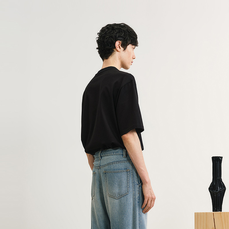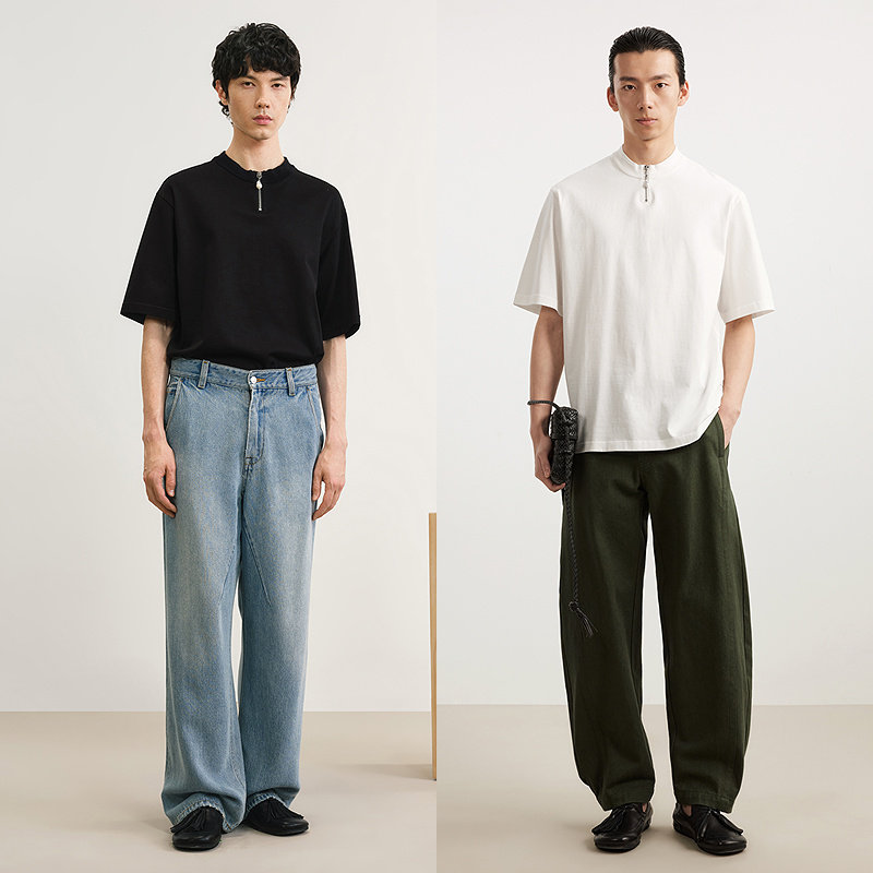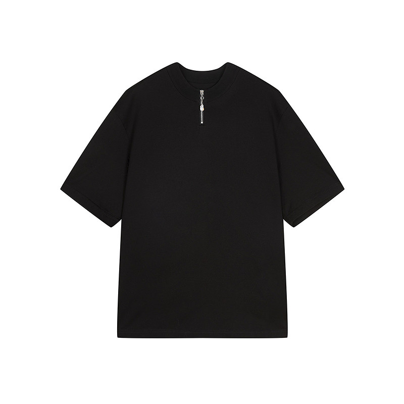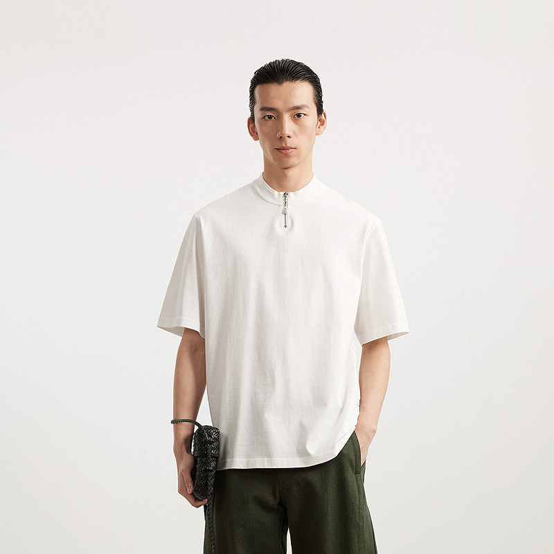 速写男装春夏新款男士短袖T恤宽松棉质半拉链上衣休闲通勤时尚