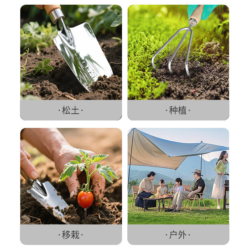 不锈钢园艺铁锹工具家用小铲子耙子松土锄头种菜种花赶海套装