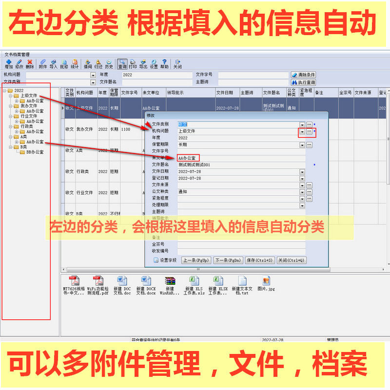 电子档案合同文件管理系统软件单机版加密狗扫描件纸质多附件导入
