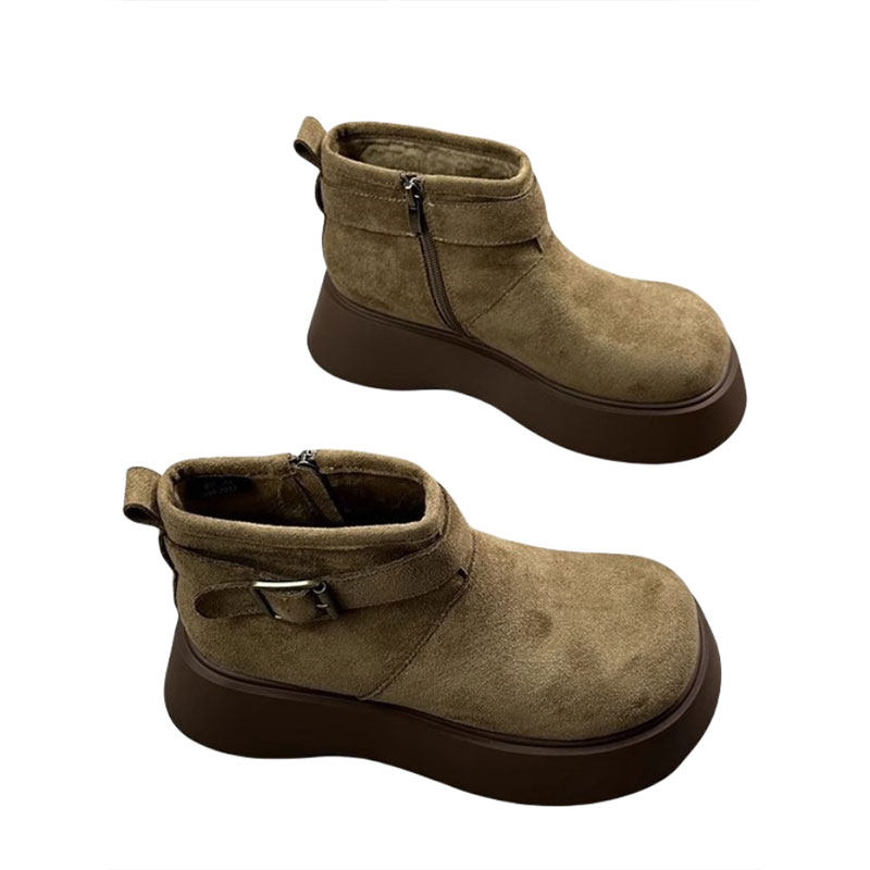 绒面厚底马丁靴女2025新款冬季加绒保暖勃肯棉鞋短靴平底磨砂圆头