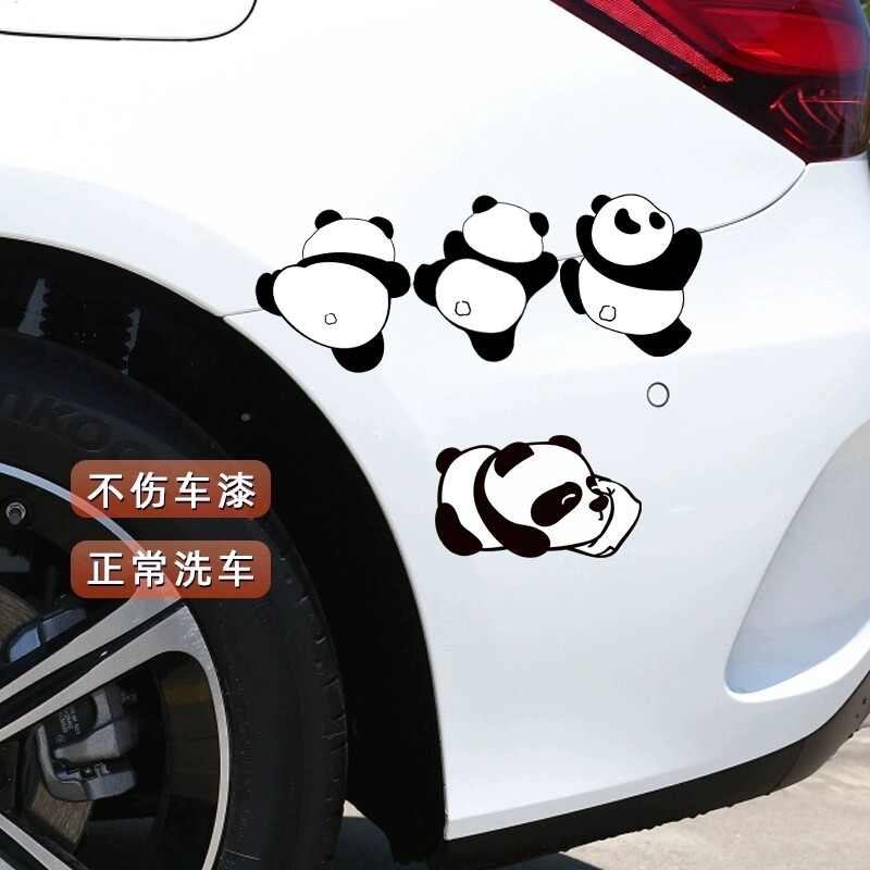 熊猫汽车贴纸划痕遮挡遮盖车头车尾搞笑车身装饰车门大面积车贴画