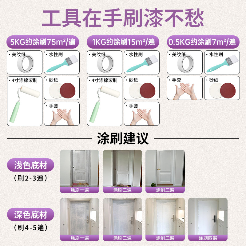 家具翻新改色漆水性木器漆免打磨室内家用自刷涂料环保净味五合一
