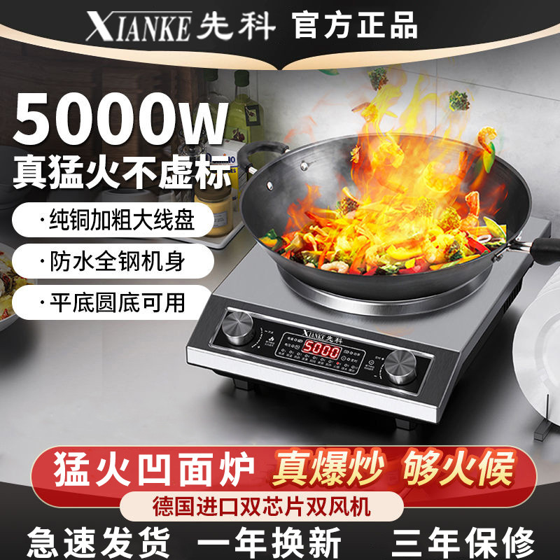 先科凹面电磁炉家用大功率5000W商用炒菜锅一体全套猛火防水省电