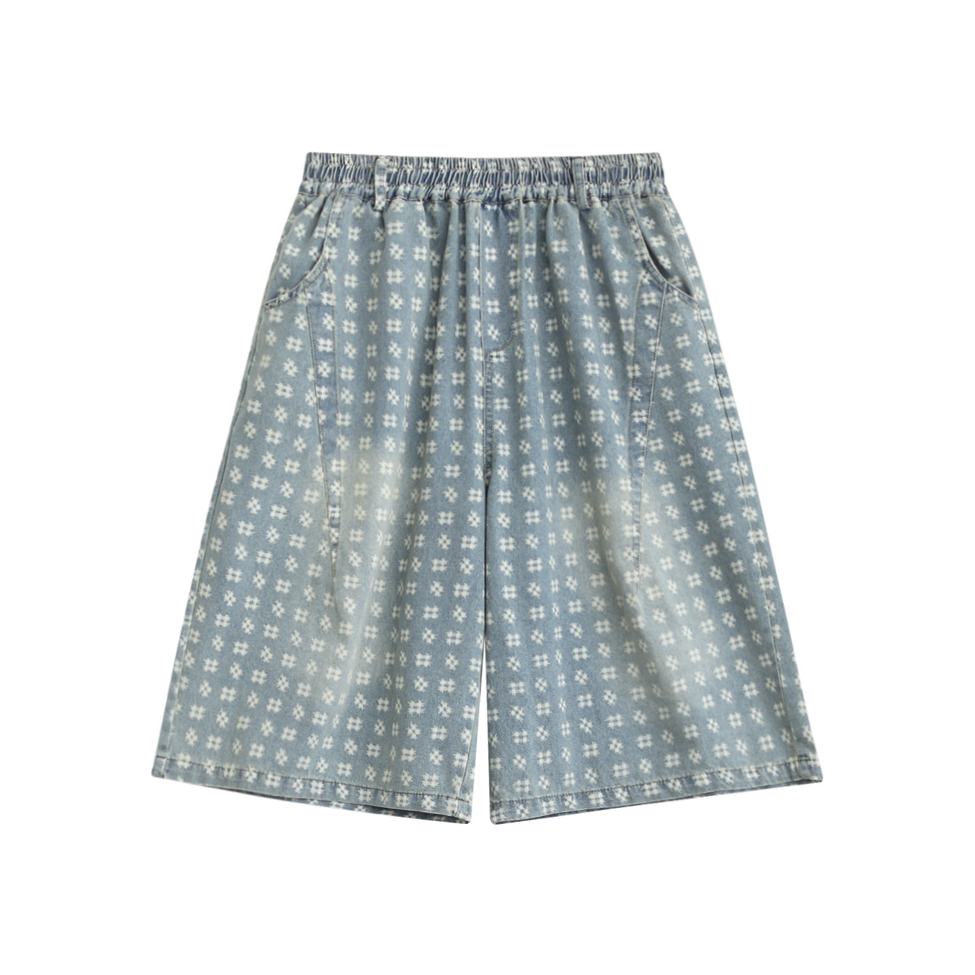 咖咪羽牛仔短裤女新款水洗直筒宽松自然腰百搭简约复古女装牛仔裤