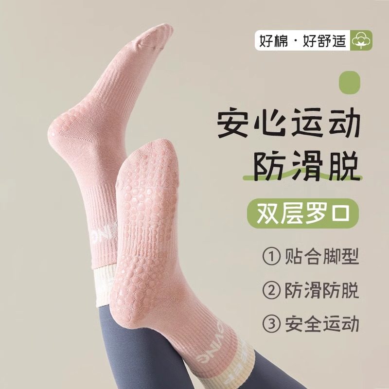 普拉提运动瑜伽袜子专业防滑中筒地板袜舞蹈室内健身跑步黑白四季