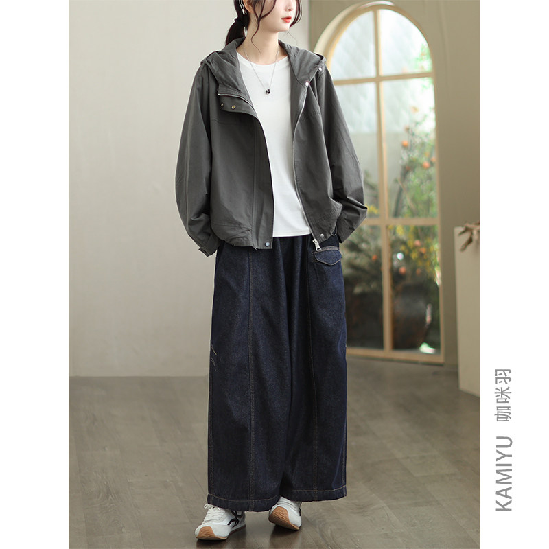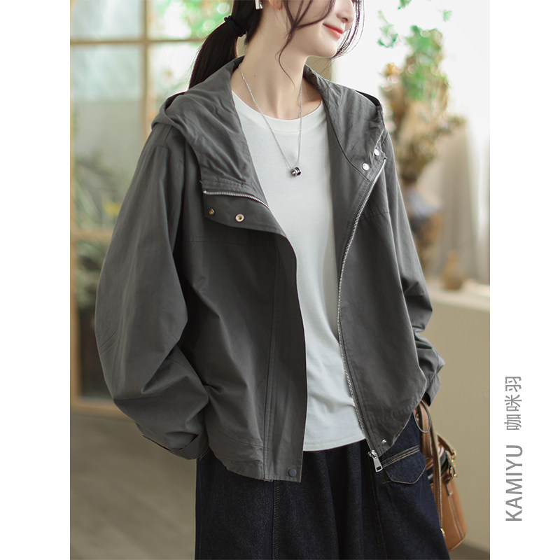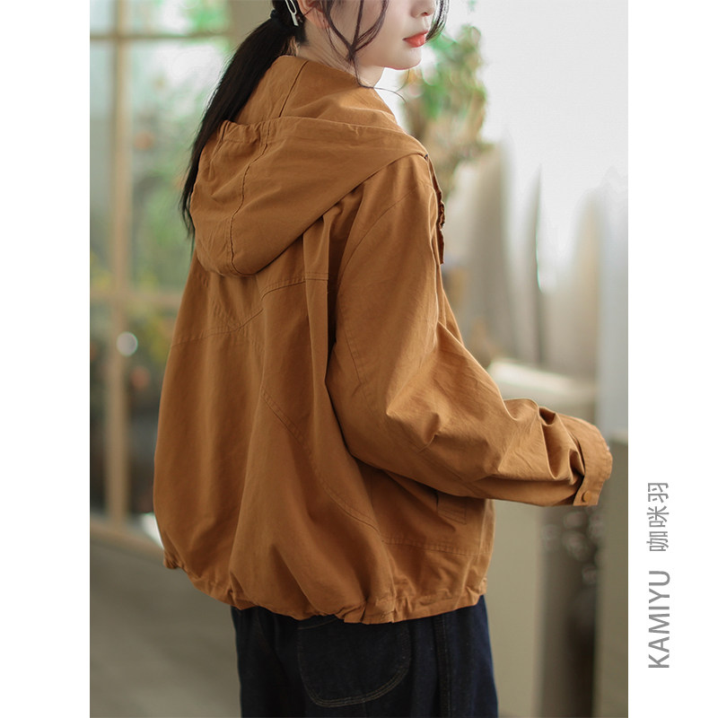 咖咪羽连帽工装秋款户外百搭宽松纯棉秋季新款松紧下摆短外套