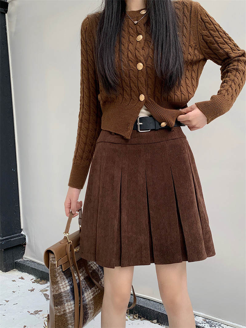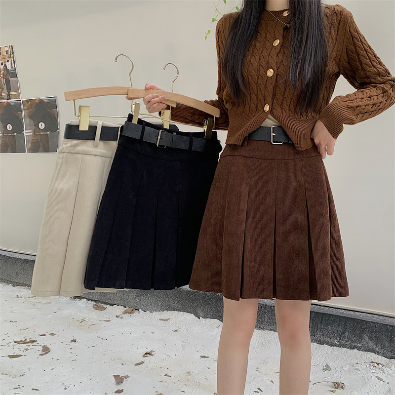 大码灯芯绒半身裙秋冬美拉德a字包臀短裙条绒半裙高腰显瘦百褶裙