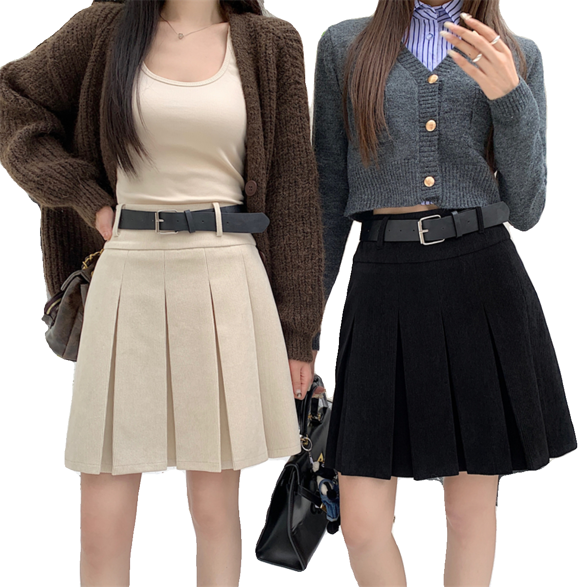 MJ STYLE灰色百褶西装裙女秋冬半身裙高腰休闲大摆a字过膝中长裙