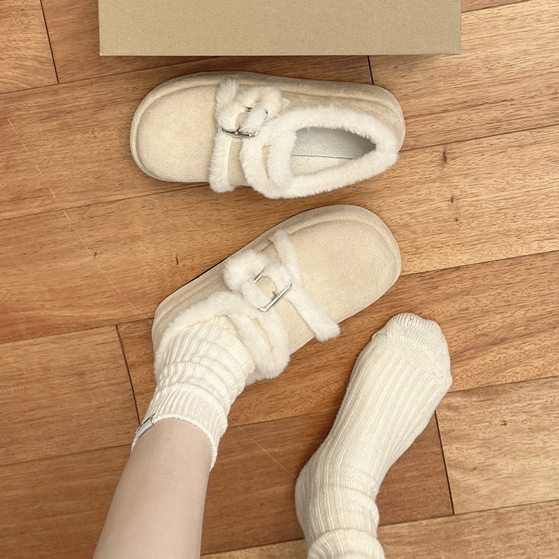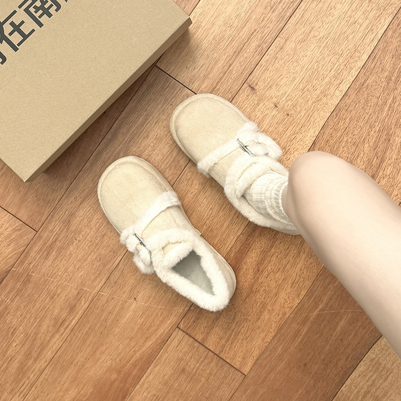 低帮厚底雪地靴女2025新款冬季懒人一脚蹬毛毛棉鞋加绒加厚女鞋子