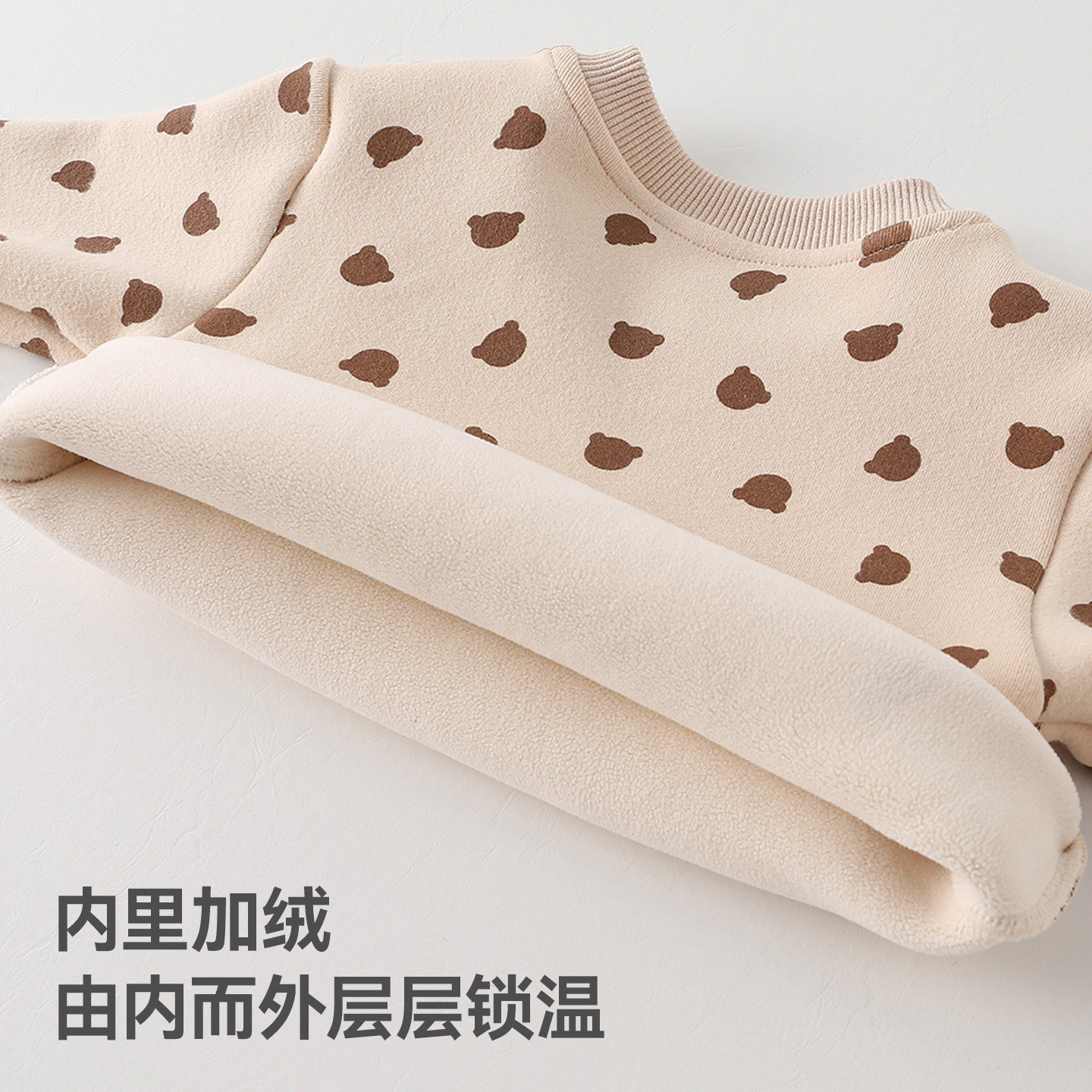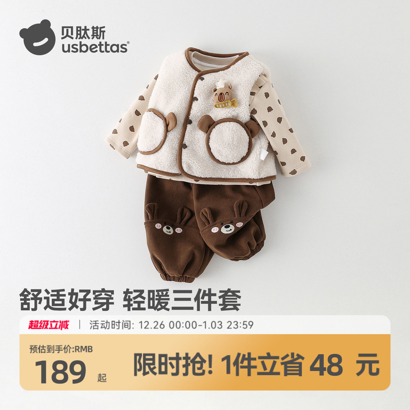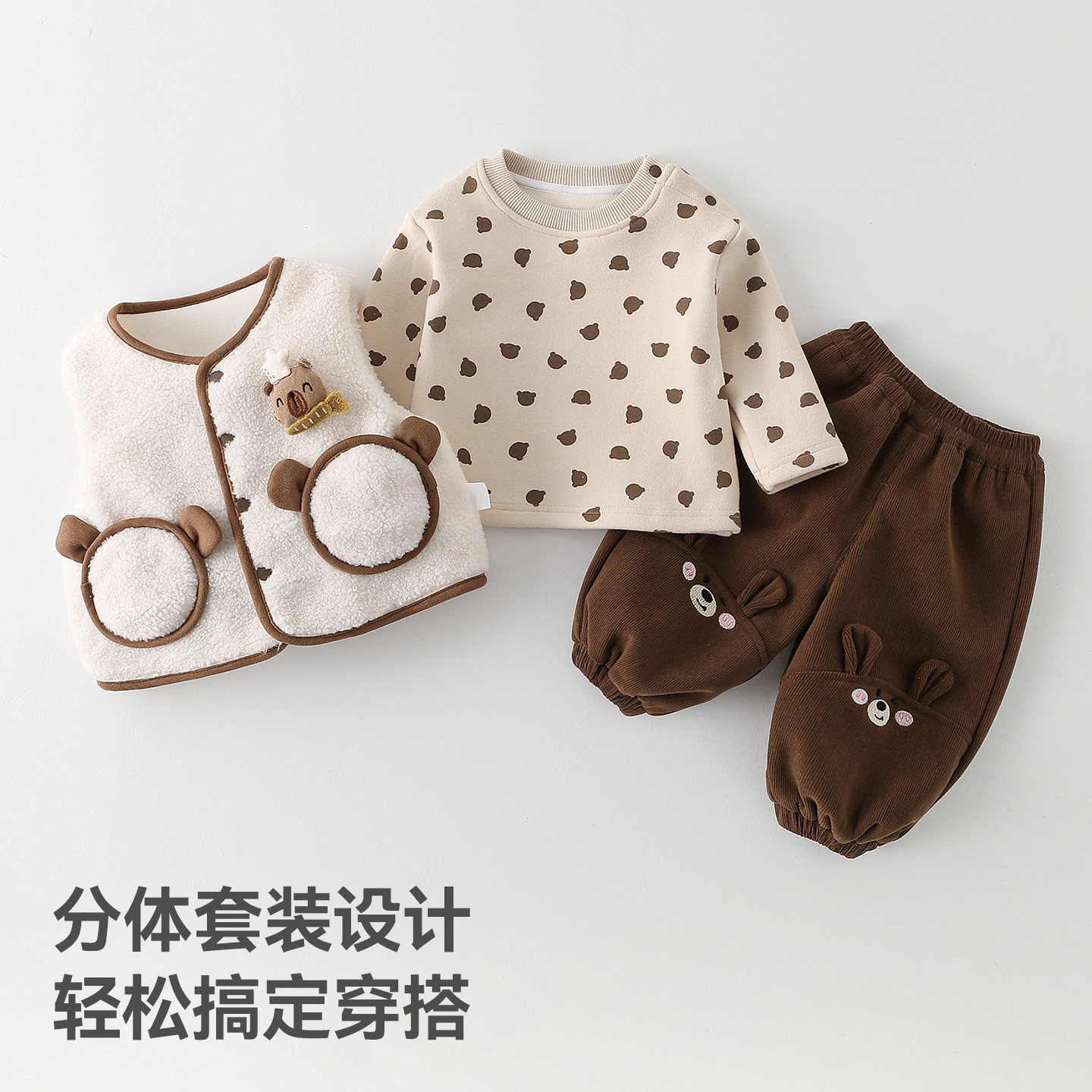 贝肽斯宝宝马甲套装男冬季新款婴儿加绒加厚长袖T恤裤子三件套女S