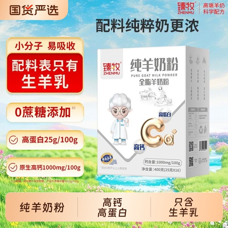 臻牧纯羊奶粉无蔗糖成人中老年儿童400g正品高钙高蛋白