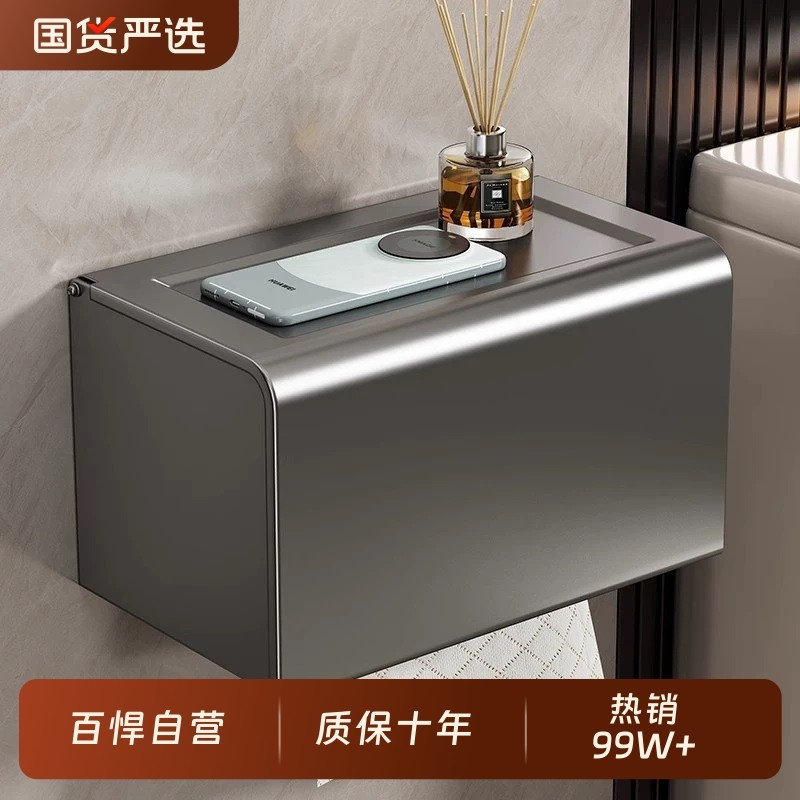 百悍厕纸盒卫生间浴室免打孔纸巾盒置物架防水壁挂厕所抽纸收纳盒