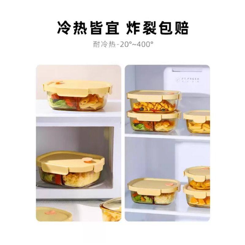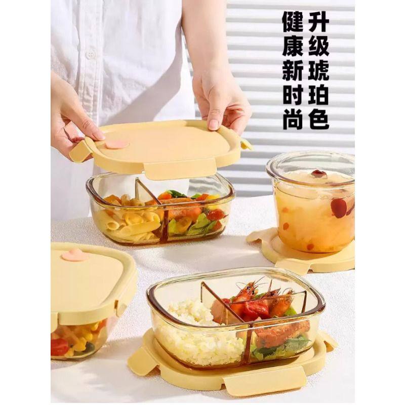 饭盒微波炉加热专用碗上班族带饭餐盒带盖玻璃保鲜盒分隔型便当盒