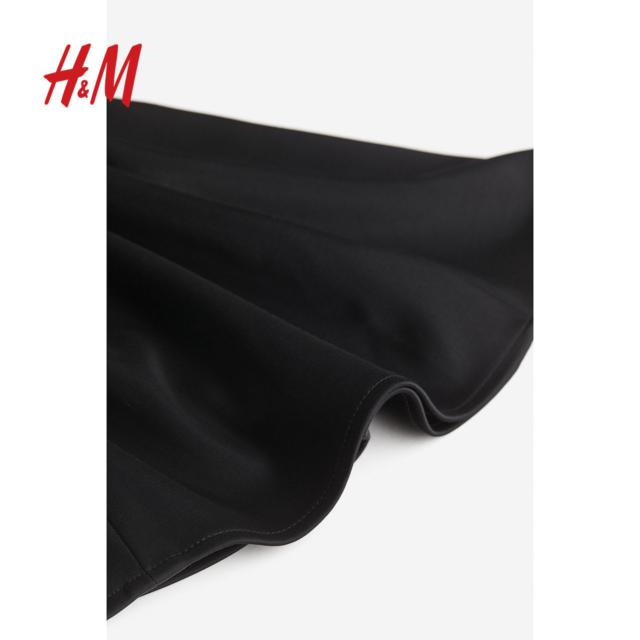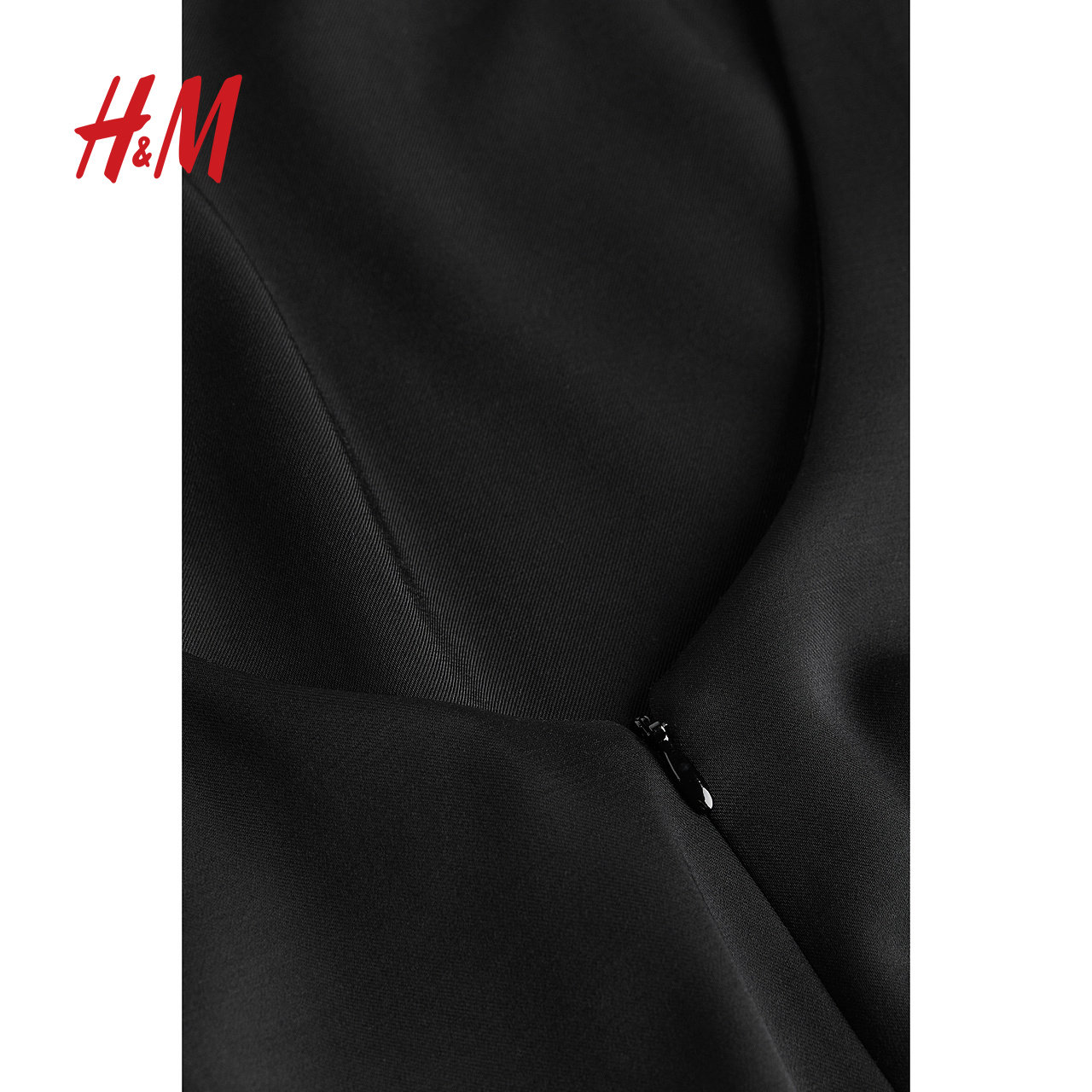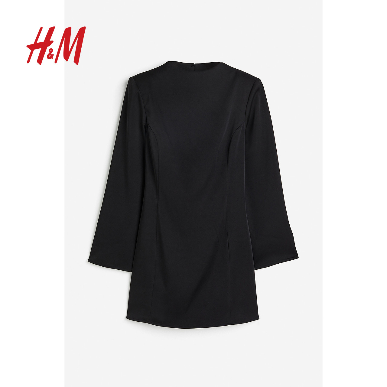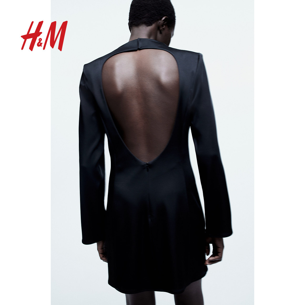 HM女装连衣裙春季千金风小黑裙时尚气质露背缎质立领裙子1207696