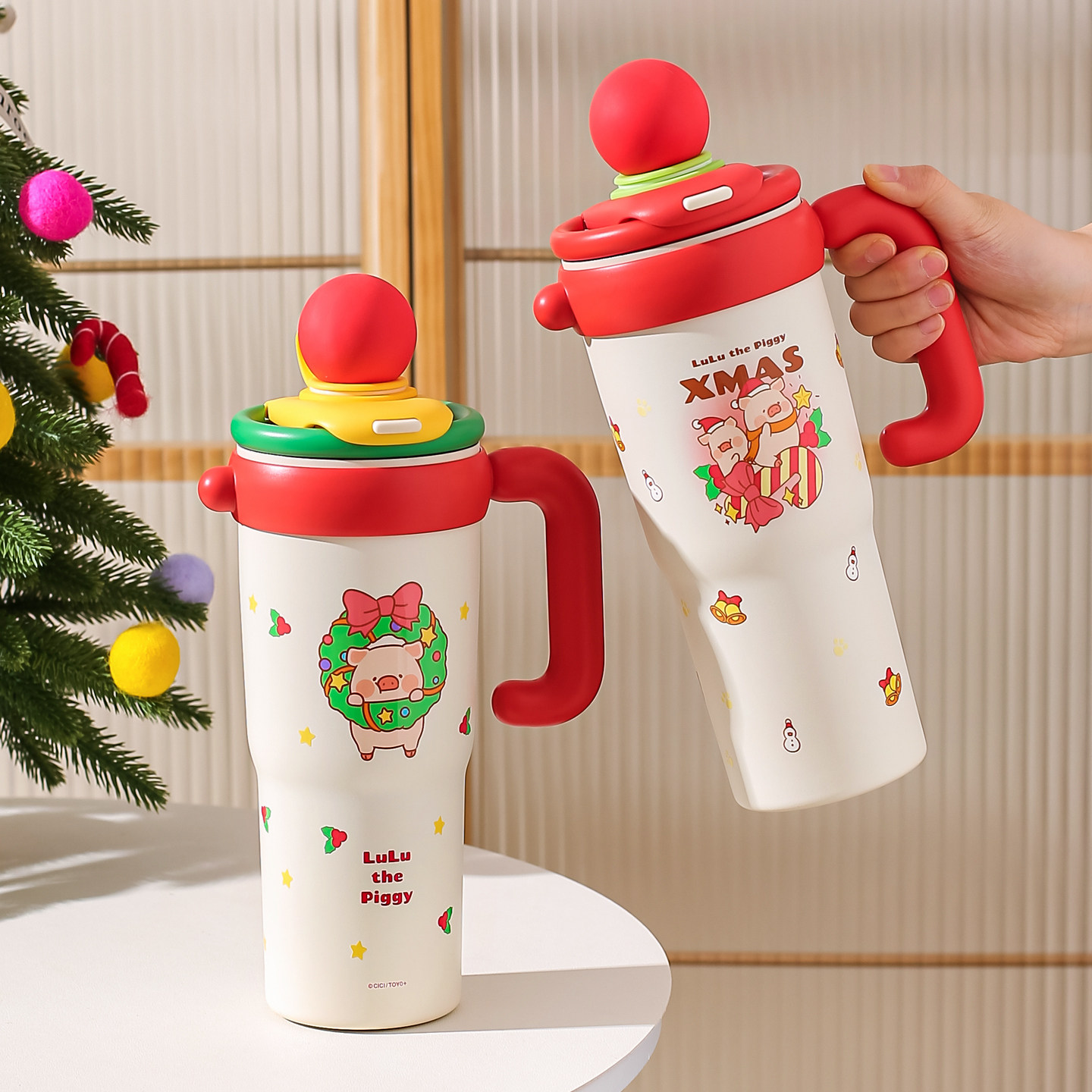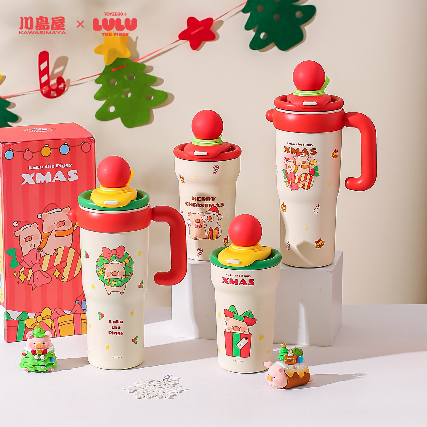 川岛屋&lulu猪联名 圣诞保温杯女士高颜值2025新款大容量吸管水杯