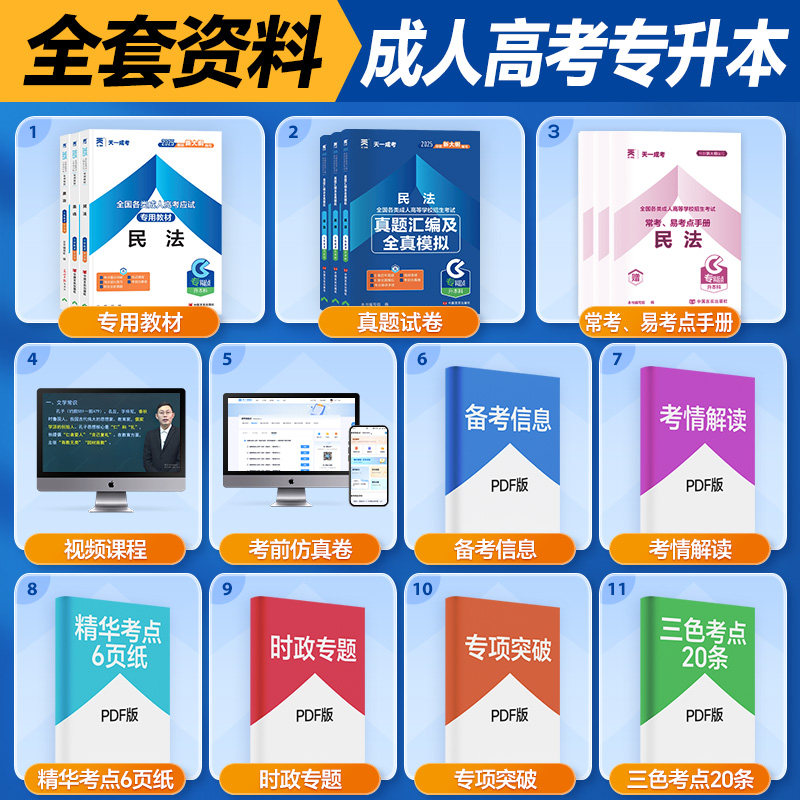 新版2025年成人高考专升本教材复习资料天一成人高等教育考试教材历年真题试卷必刷题政治英语高数一高数二民法生态学大学语文艺术
