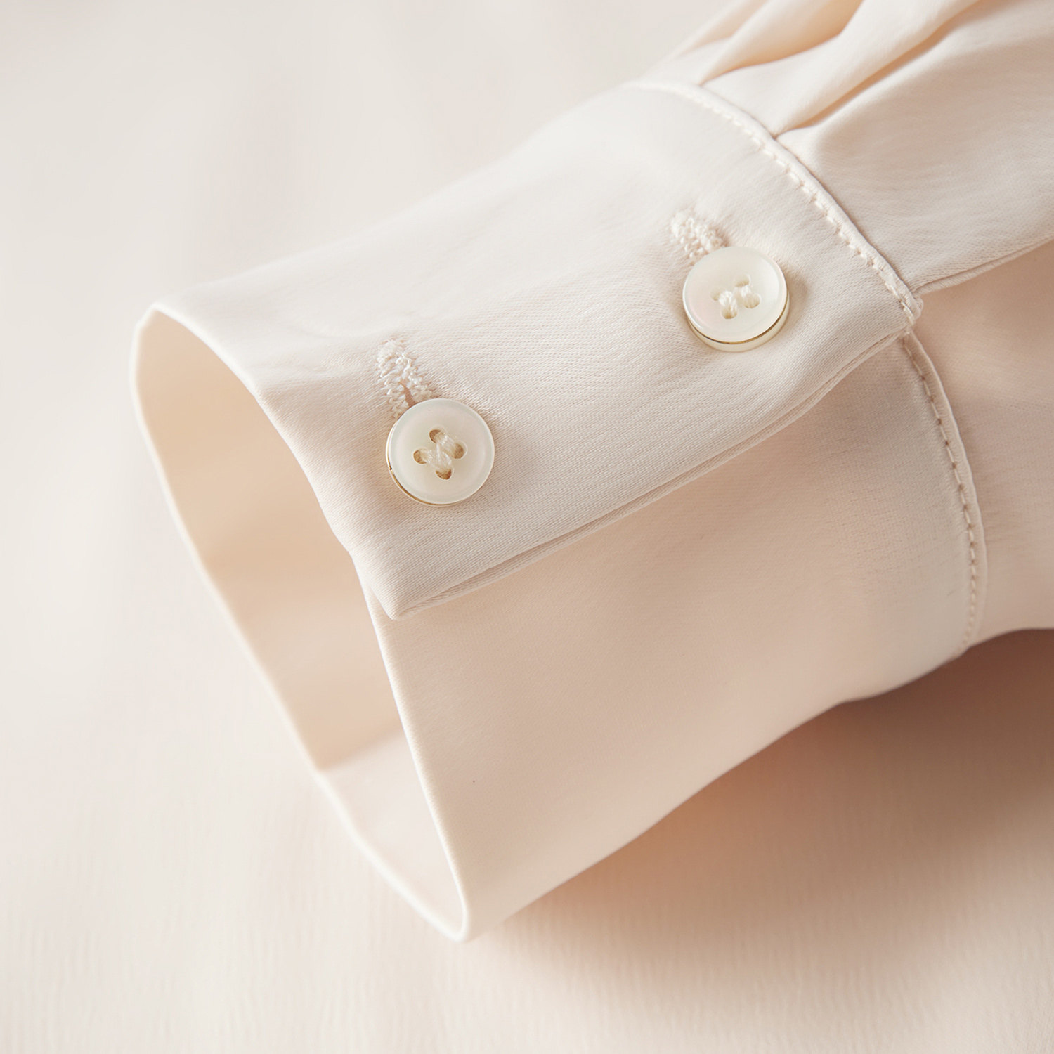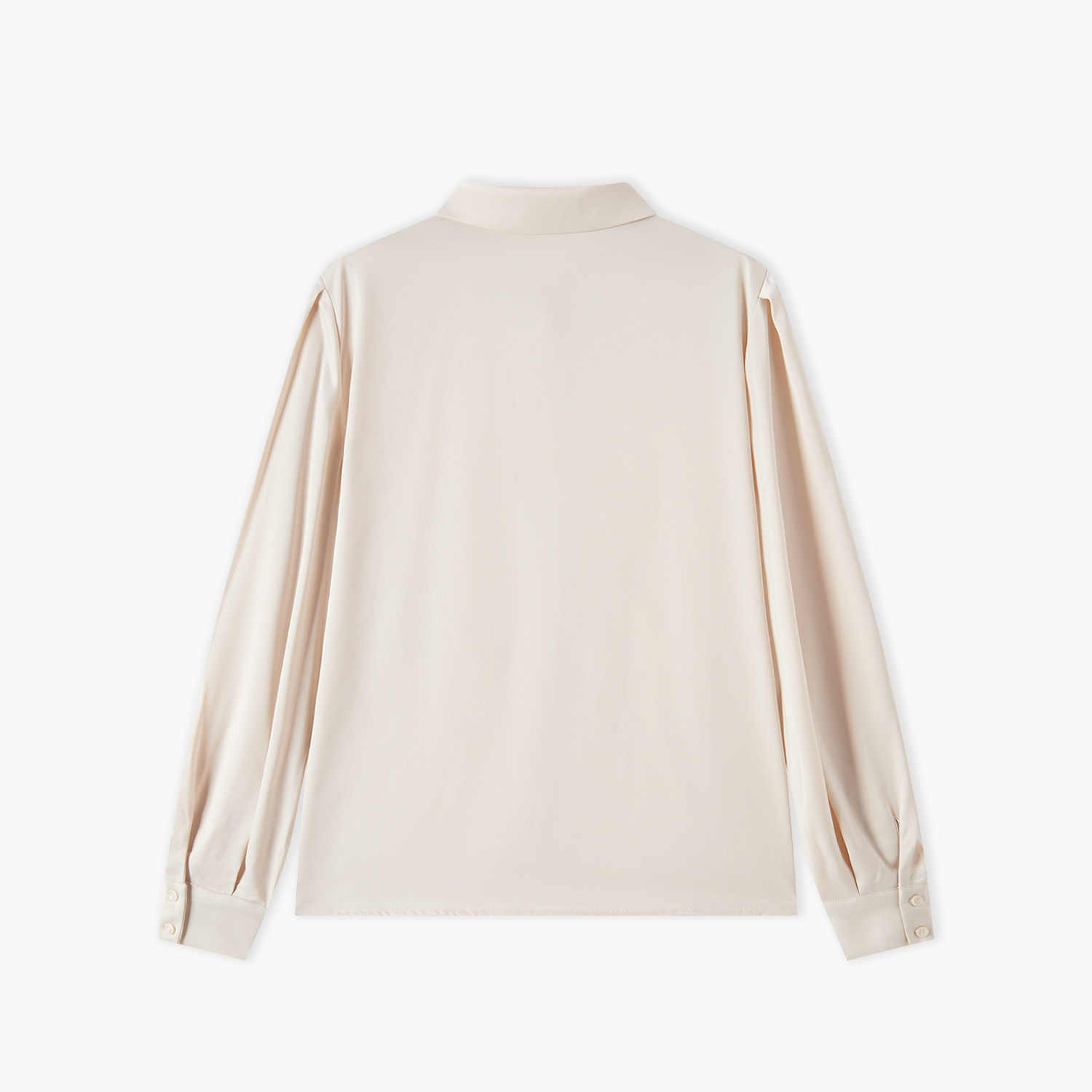 爱居兔春季新款淑女优雅系带装饰垂顺面料长袖休闲衬衫