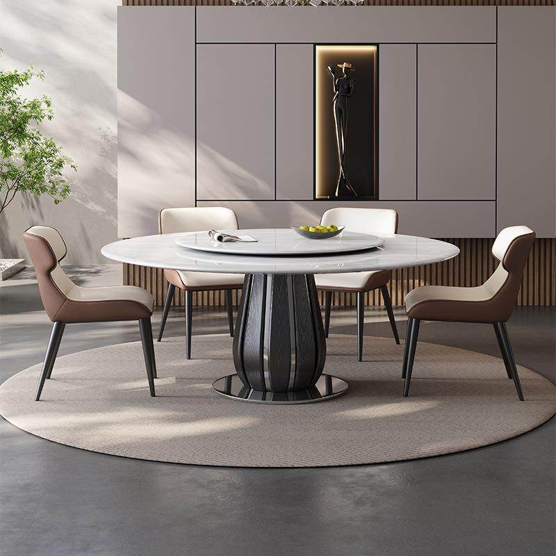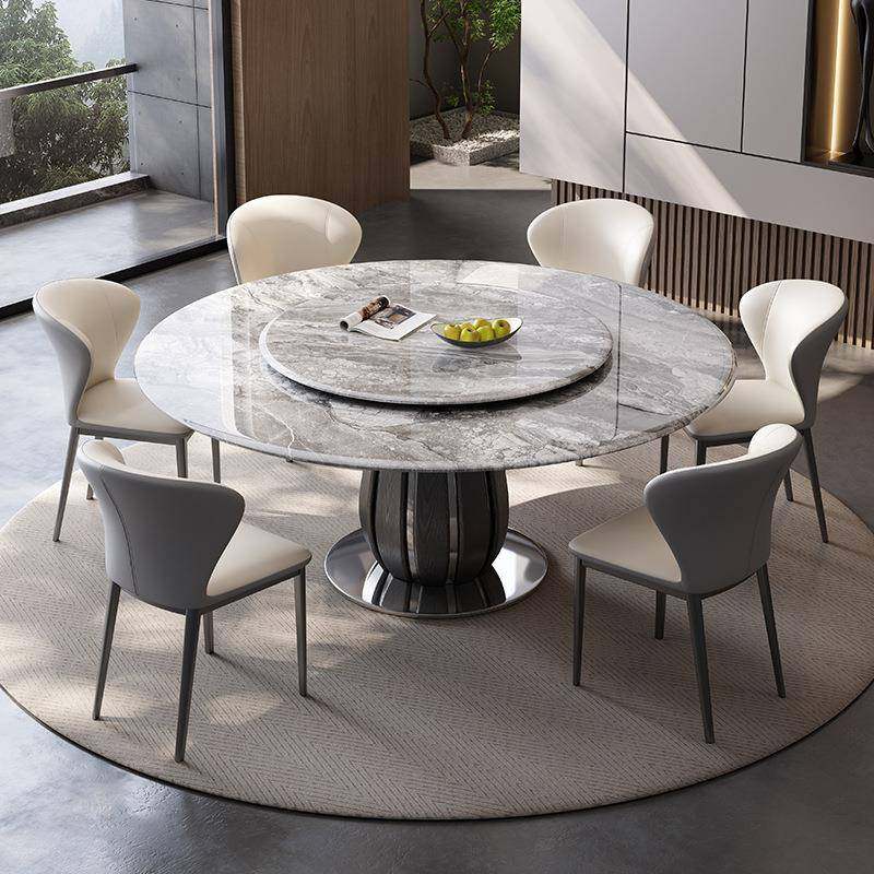 轻奢高端超晶石家用圆桌不锈钢圆形微晶石奢石带转盘小户型餐桌椅
