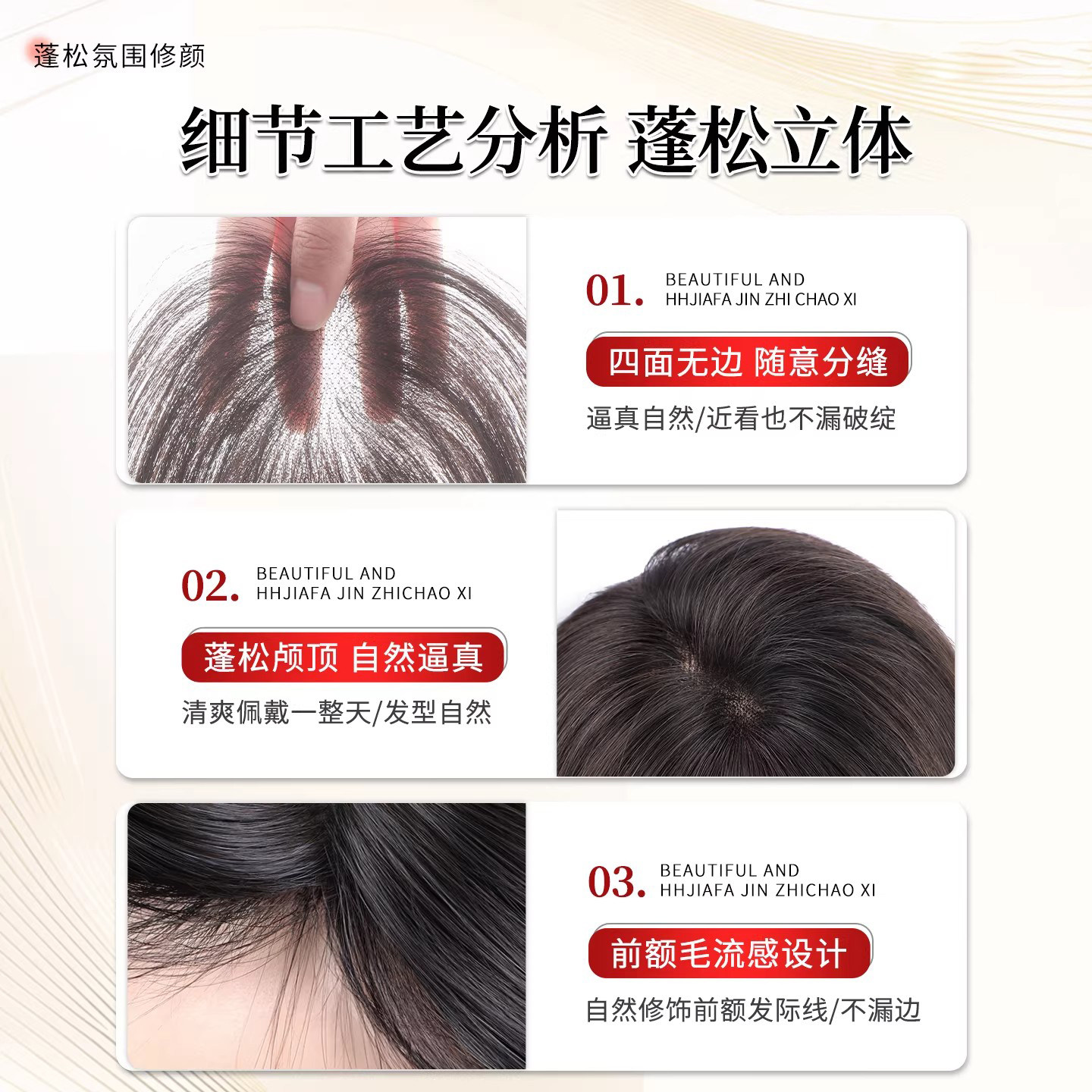 刘海假发女片头顶补发蓬松增发量仿真发遮白发高颅顶轻薄无痕补发