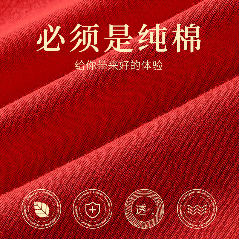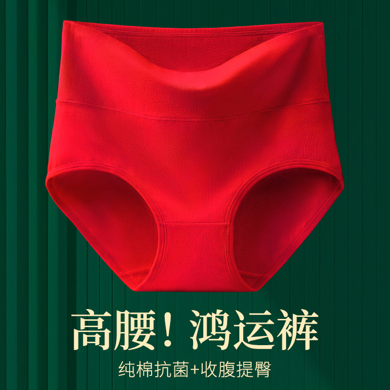 属马高腰纯棉女红色内裤抗菌提臀大红大码红三角裤简约收腹中腰