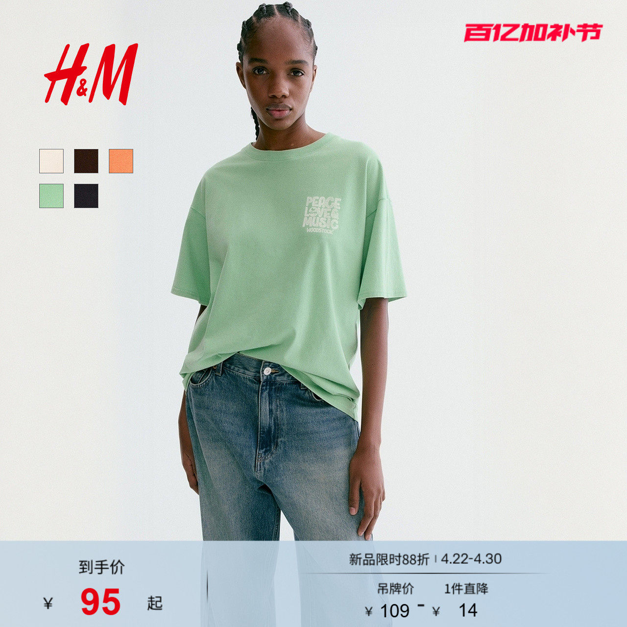 HM女装T恤2026夏季新款乐队圆领印花图案大廓形短袖上衣1314589
