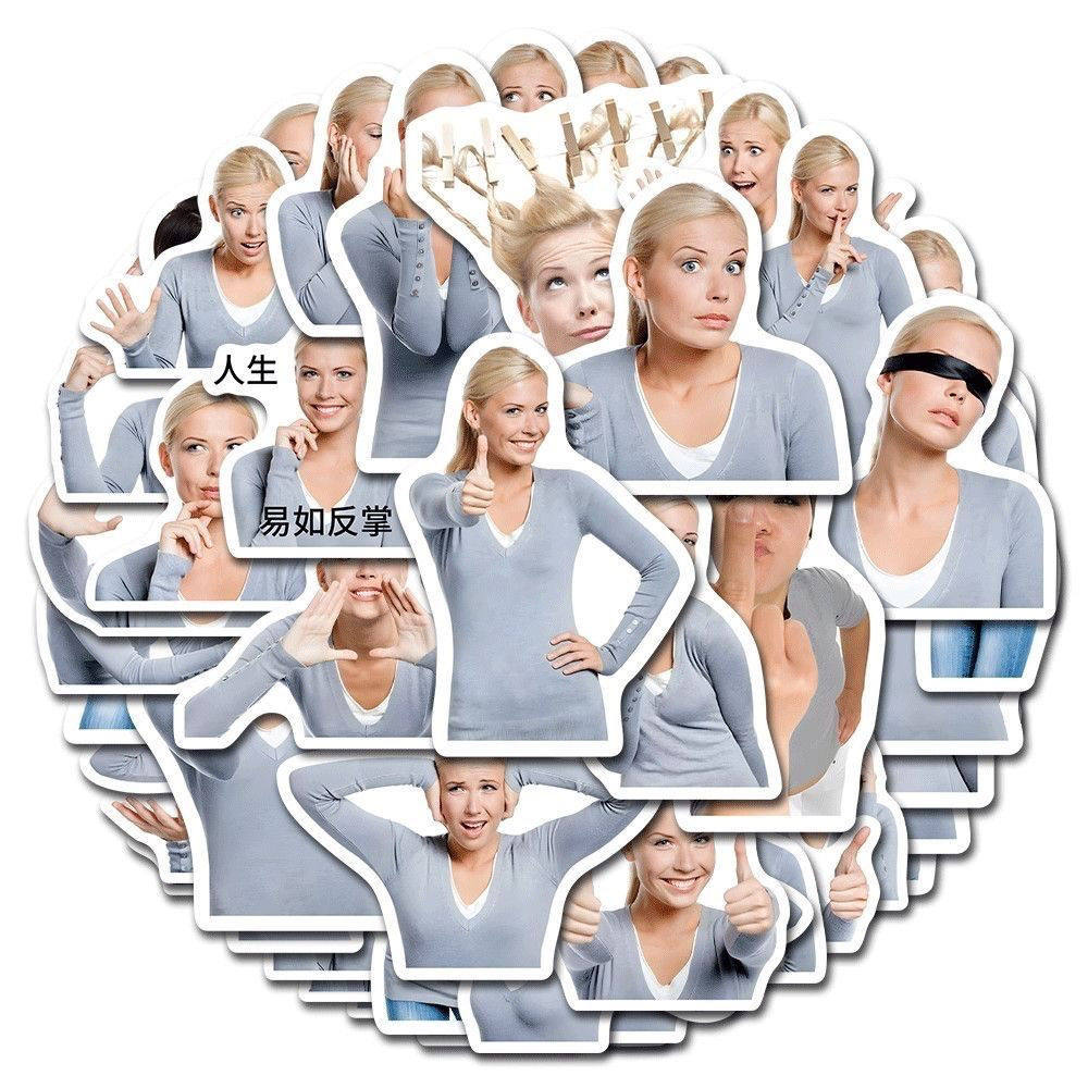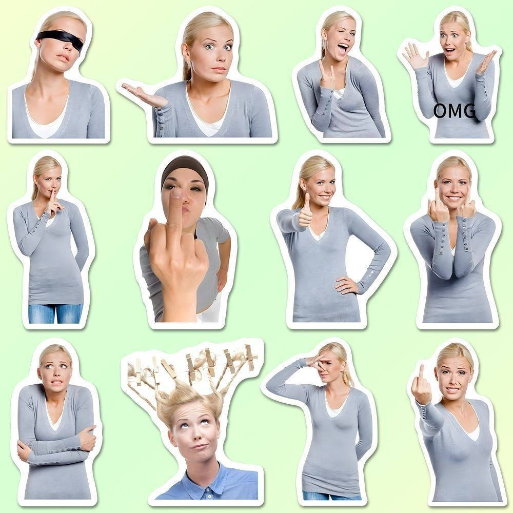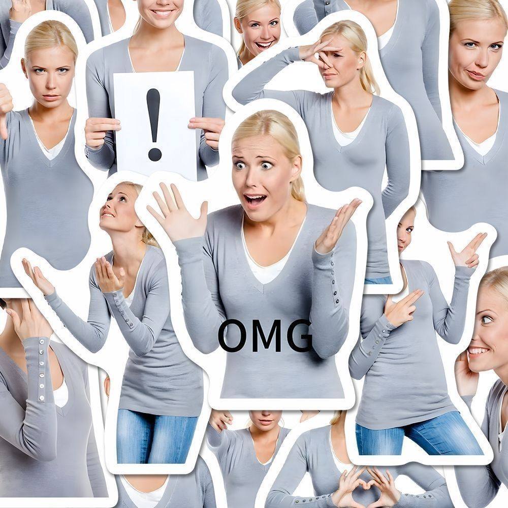 112张ins搞笑创意美国女人金发姐贴纸沙雕趣味表情包diy装饰贴画