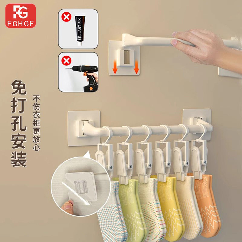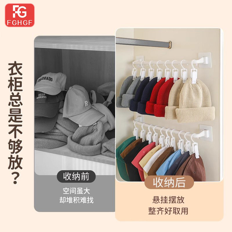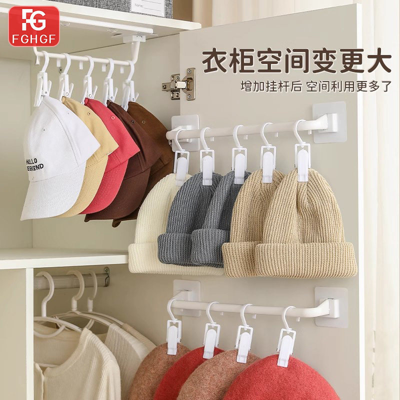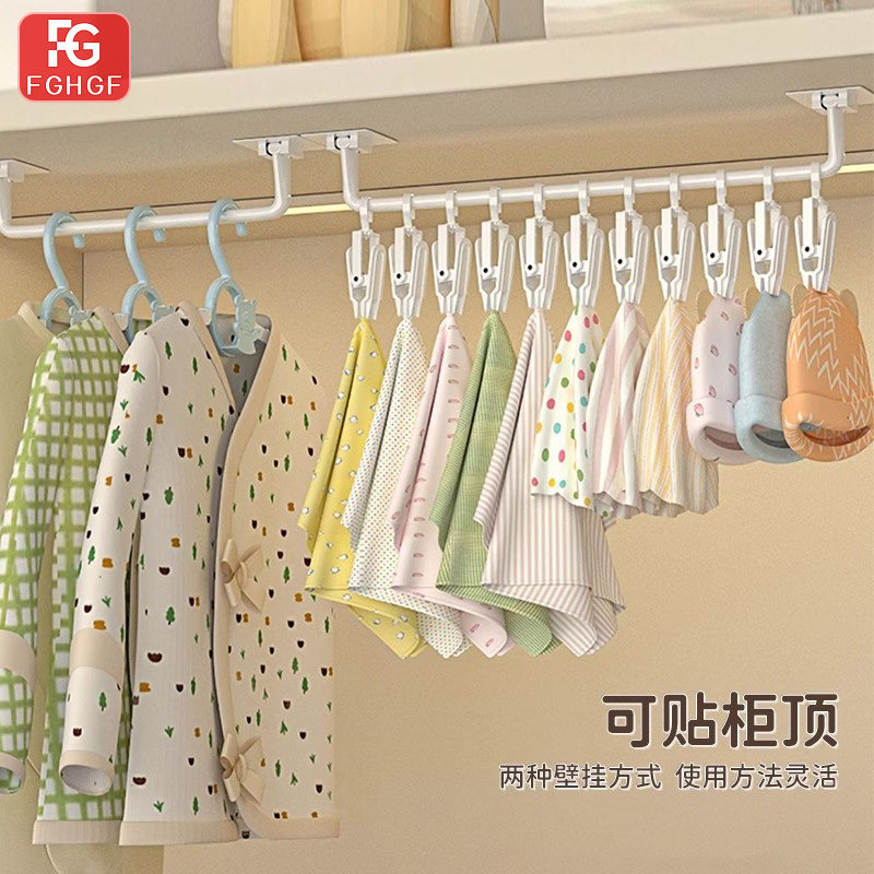 神器衣柜收纳挂杆帽子架壁挂免打孔婴儿挂钩儿童挂架袜子夹子柜子