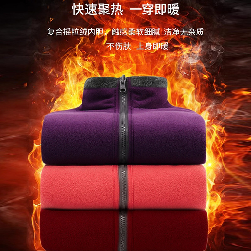 中老年人冬季颗粒摇粒绒外套妈妈羊羔绒卫衣女装秋冬加绒加厚上衣