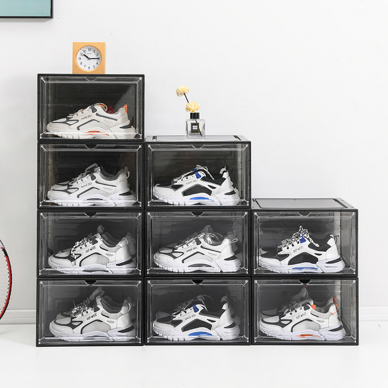 磁吸硬塑料透明亚克力鞋盒鞋子收纳盒AJ加厚省空间鞋架鞋柜侧开