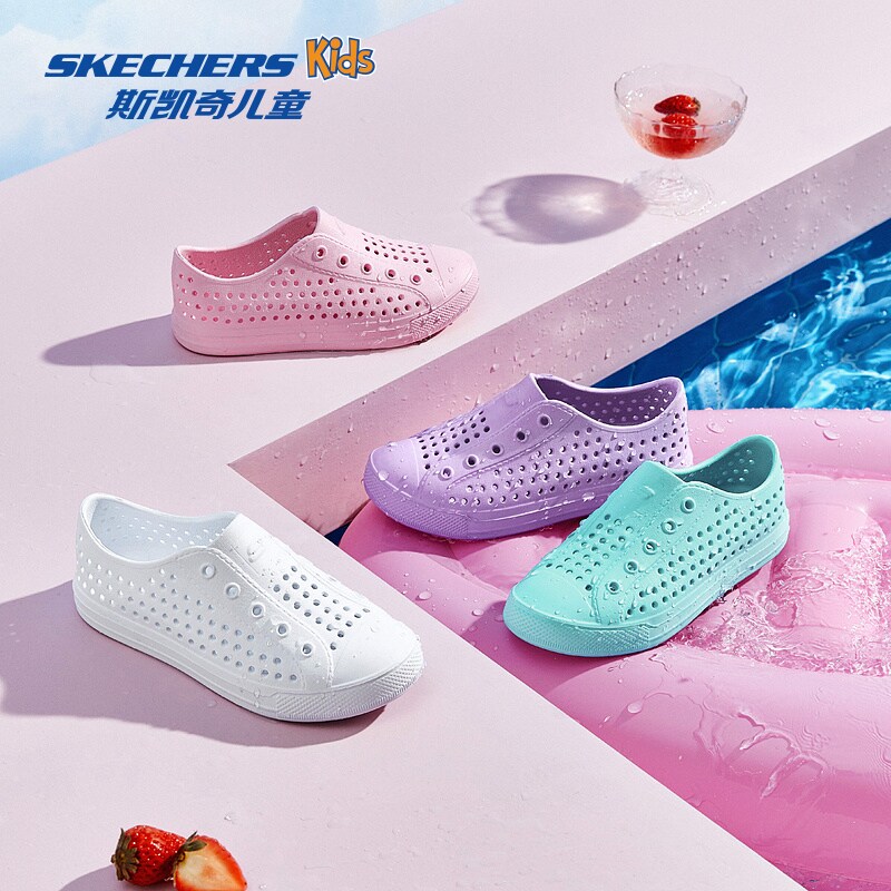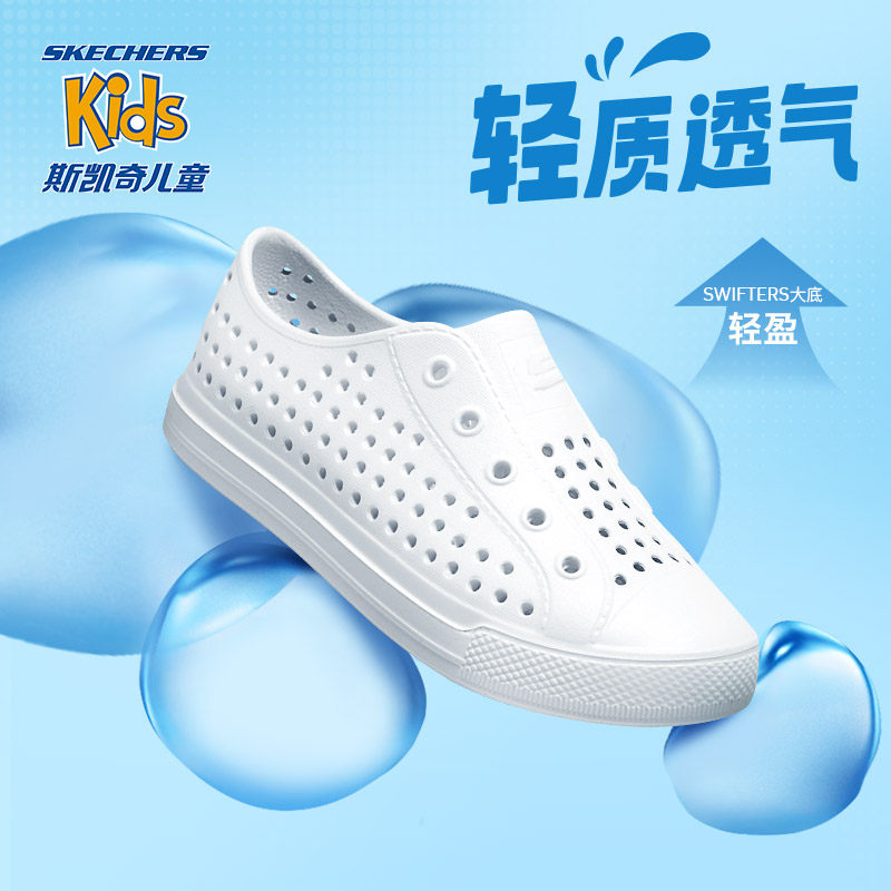 Skechers斯凯奇童鞋夏季儿童洞洞鞋纯色男女童白色凉鞋包头沙滩鞋