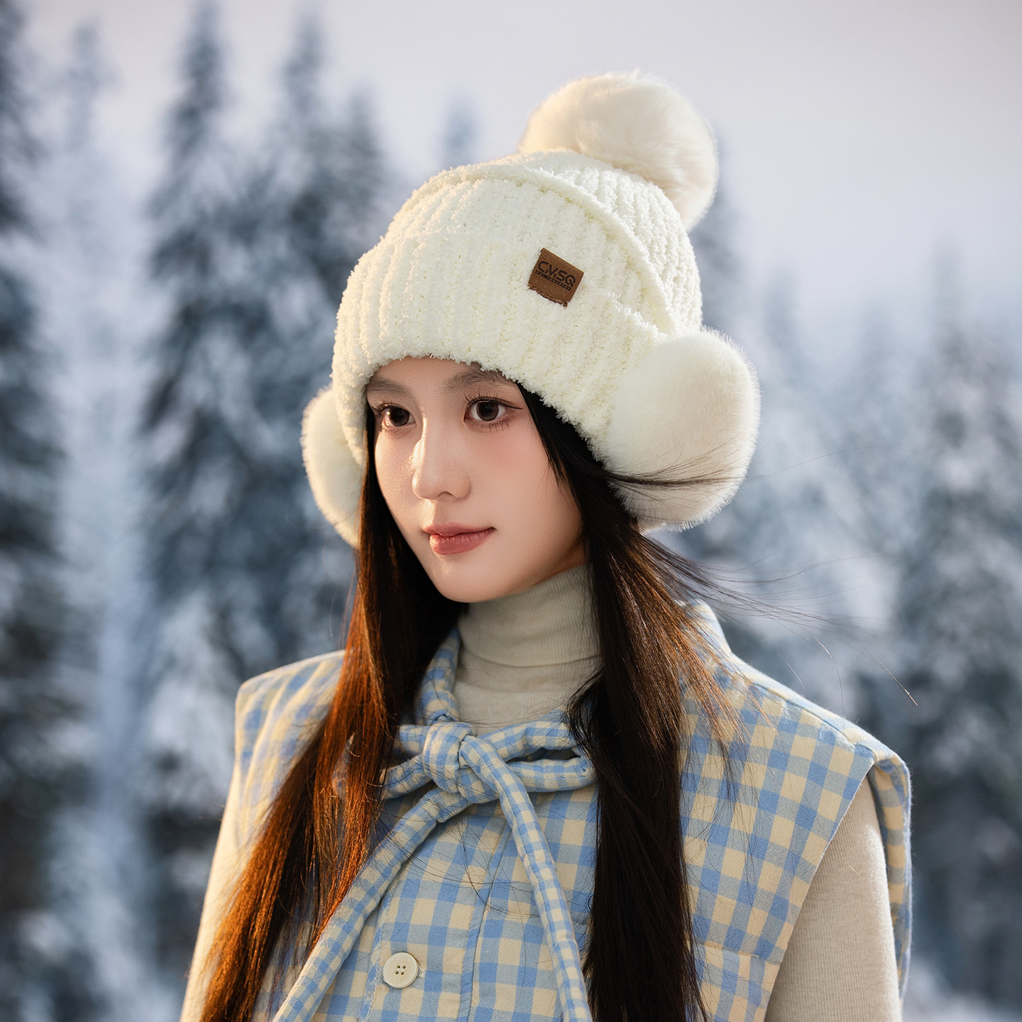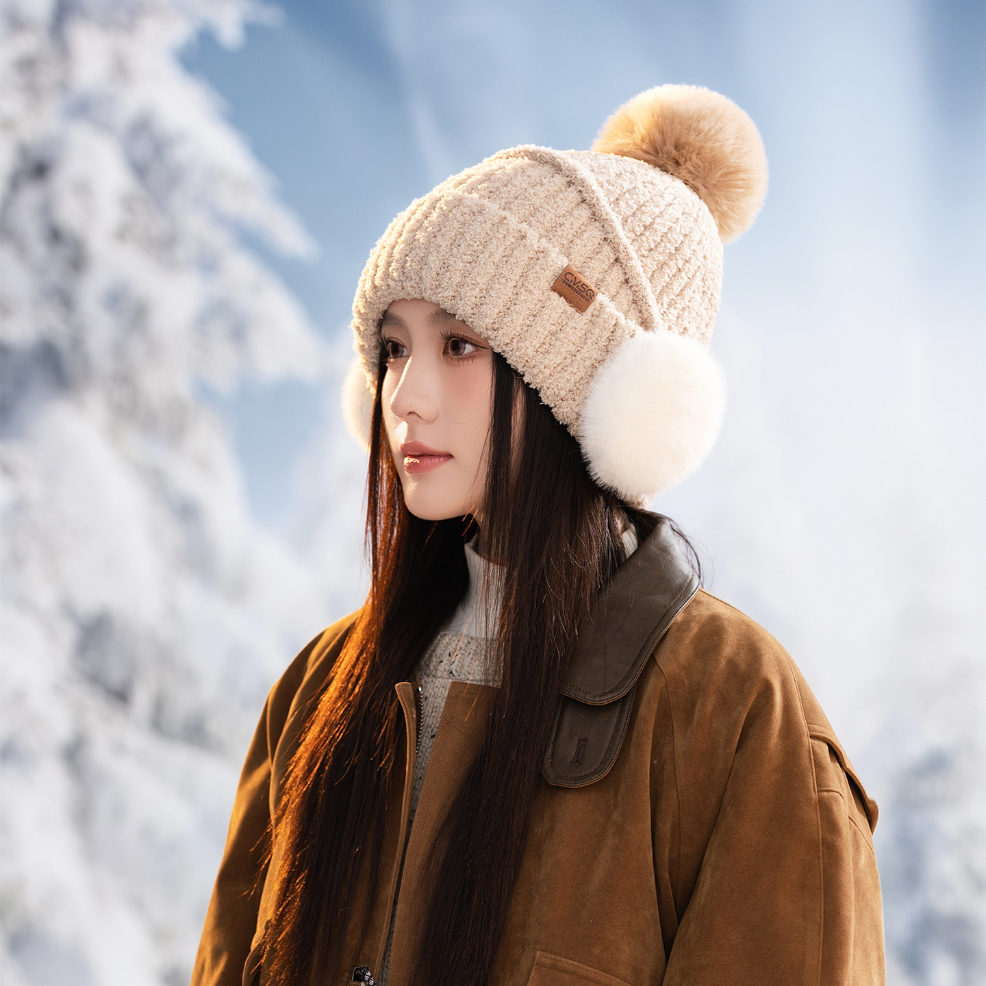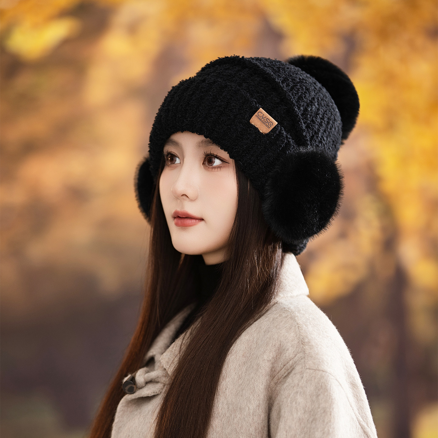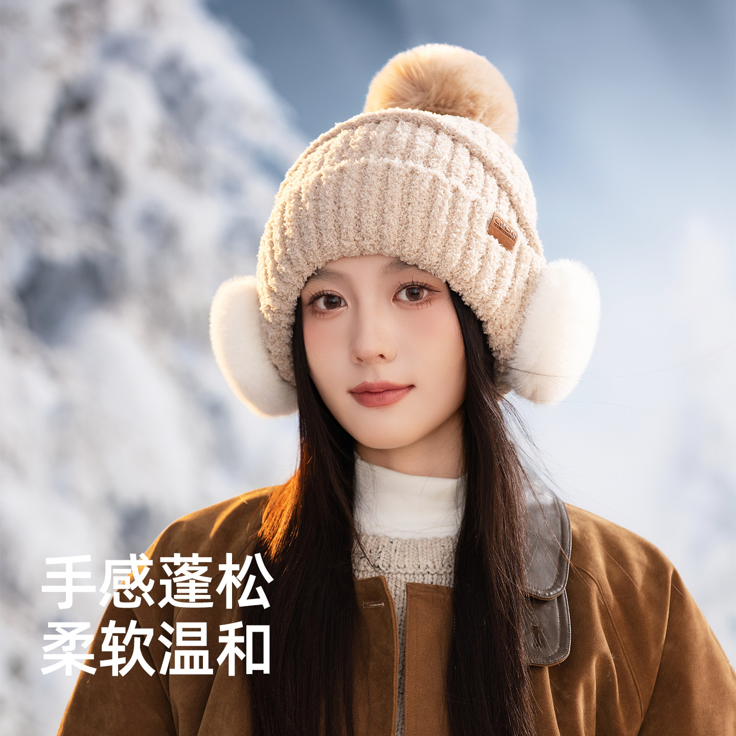 针织帽子女冬季保暖护耳包头帽加绒厚防寒风雷锋帽户外旅游骑行J