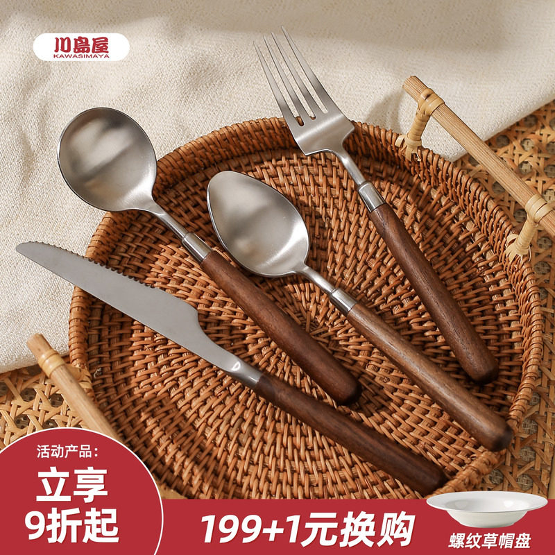 川岛屋牛排西餐餐具刀叉套装全套高级感牛扒专用不锈钢勺子三件套