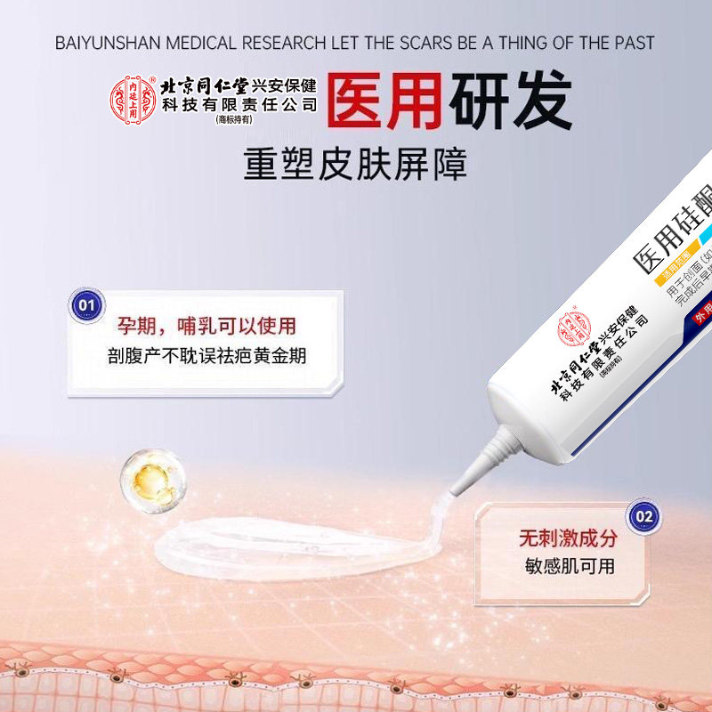 北京同仁堂医用硅酮凝胶祛疤膏除疤痕修复去增生凸起剖腹产第一名