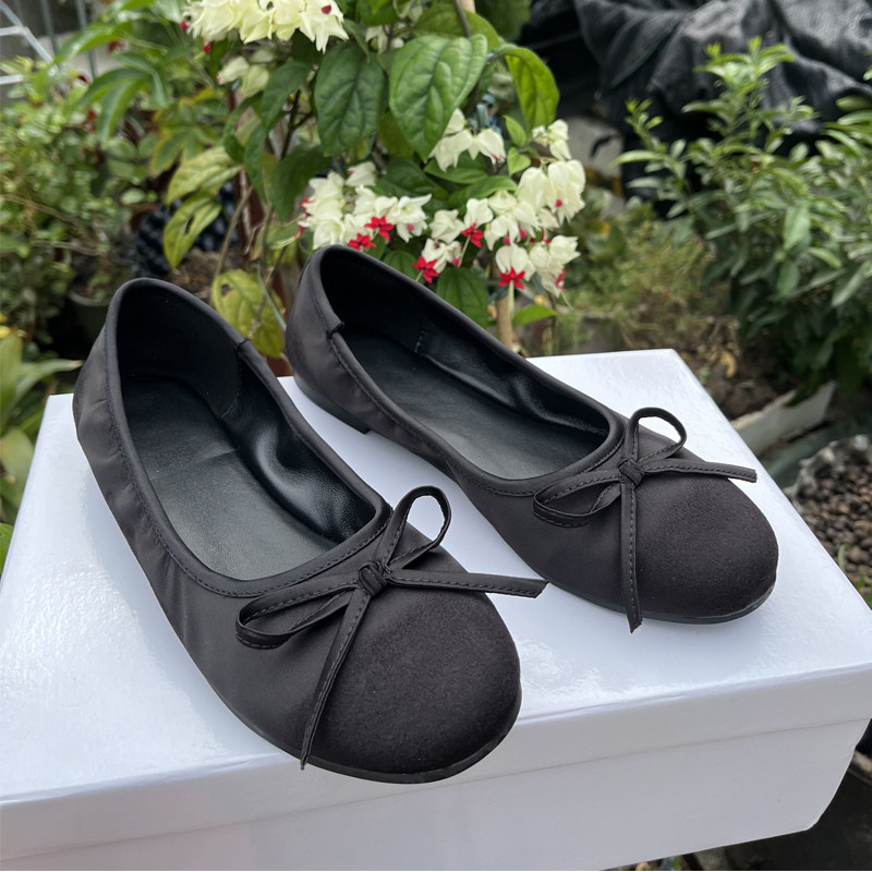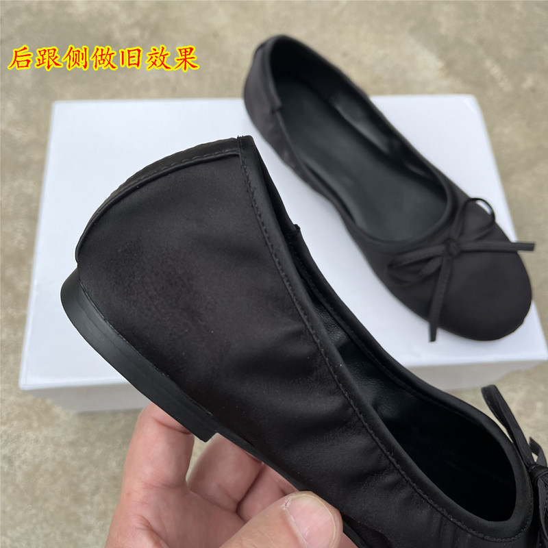 孝昌起点真丝蝴蝶结芭蕾舞鞋女圆头浅口平底一脚蹬软底玛丽珍单鞋