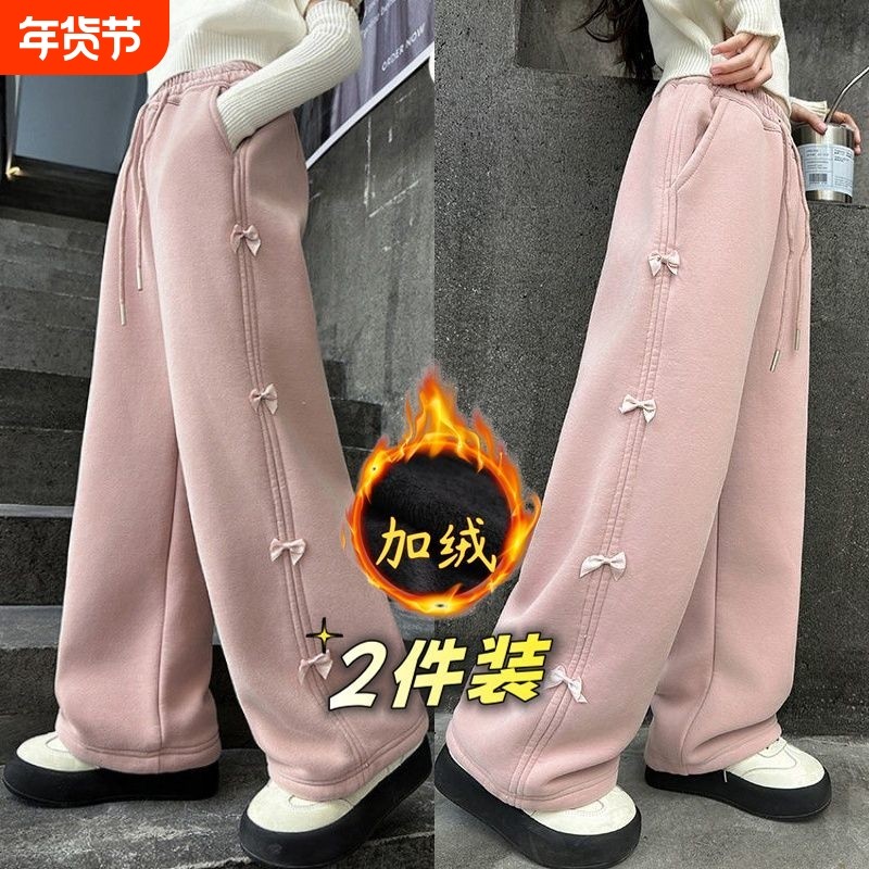 女童运动裤春秋2025新款儿童春装卫裤女大童宽松灰色直筒裤子加绒