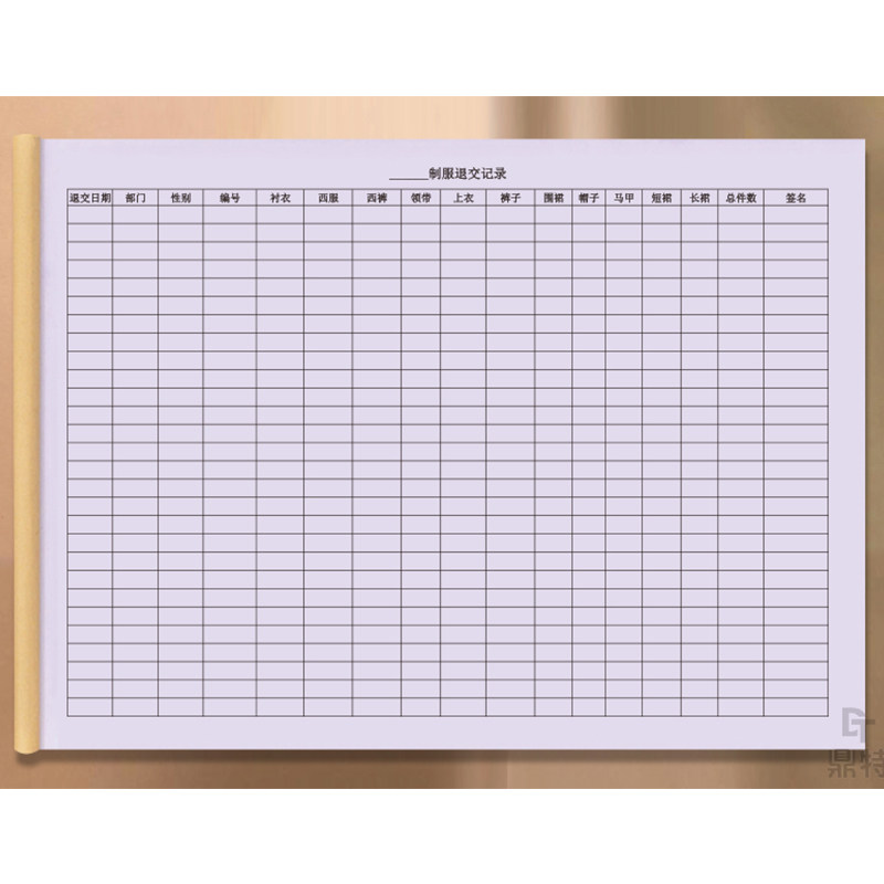 制服退交记录公司员工职员前台保安保洁工作服职工服装职业装交接换洗交付登记本记录册服饰管理手册台账日志
