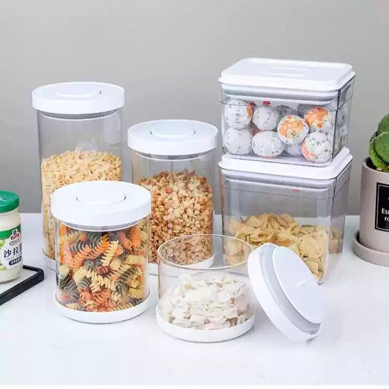 方形按压式储物罐密封罐厨房五谷杂粮塑料糖果罐果粉盒透明收纳罐