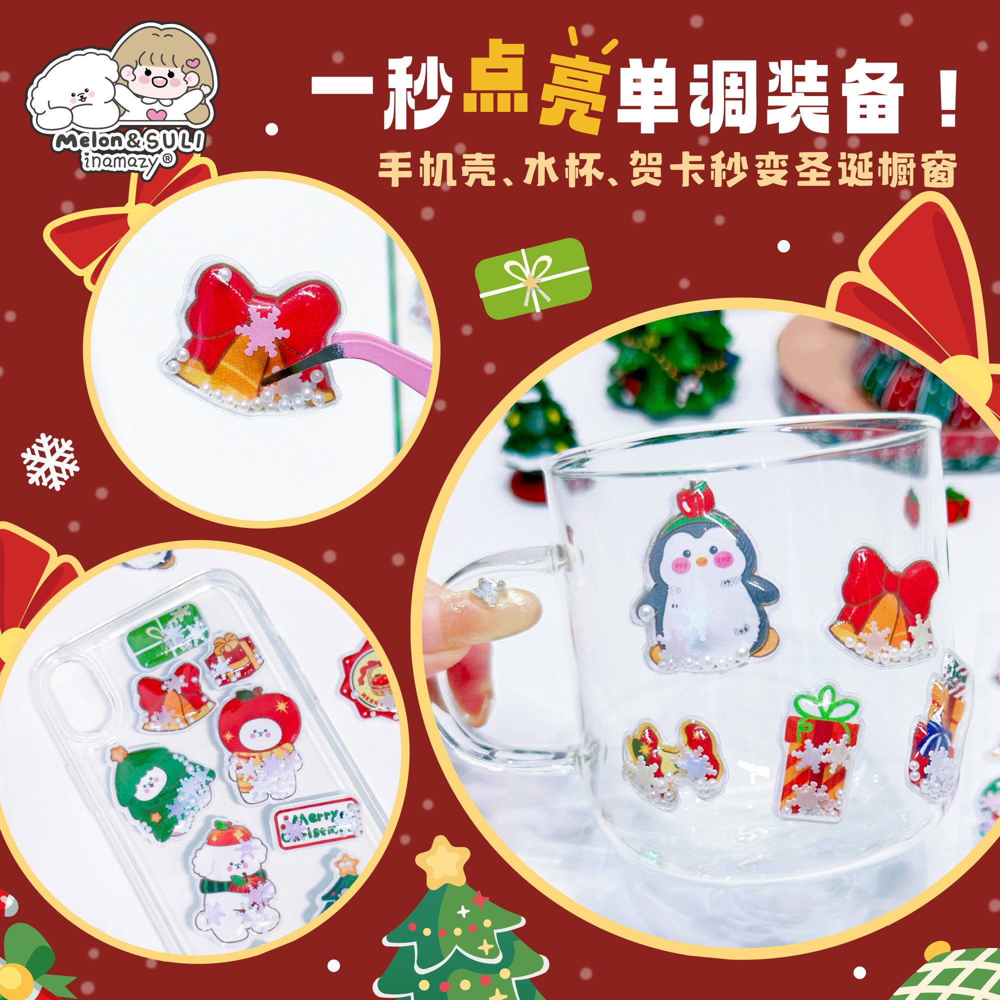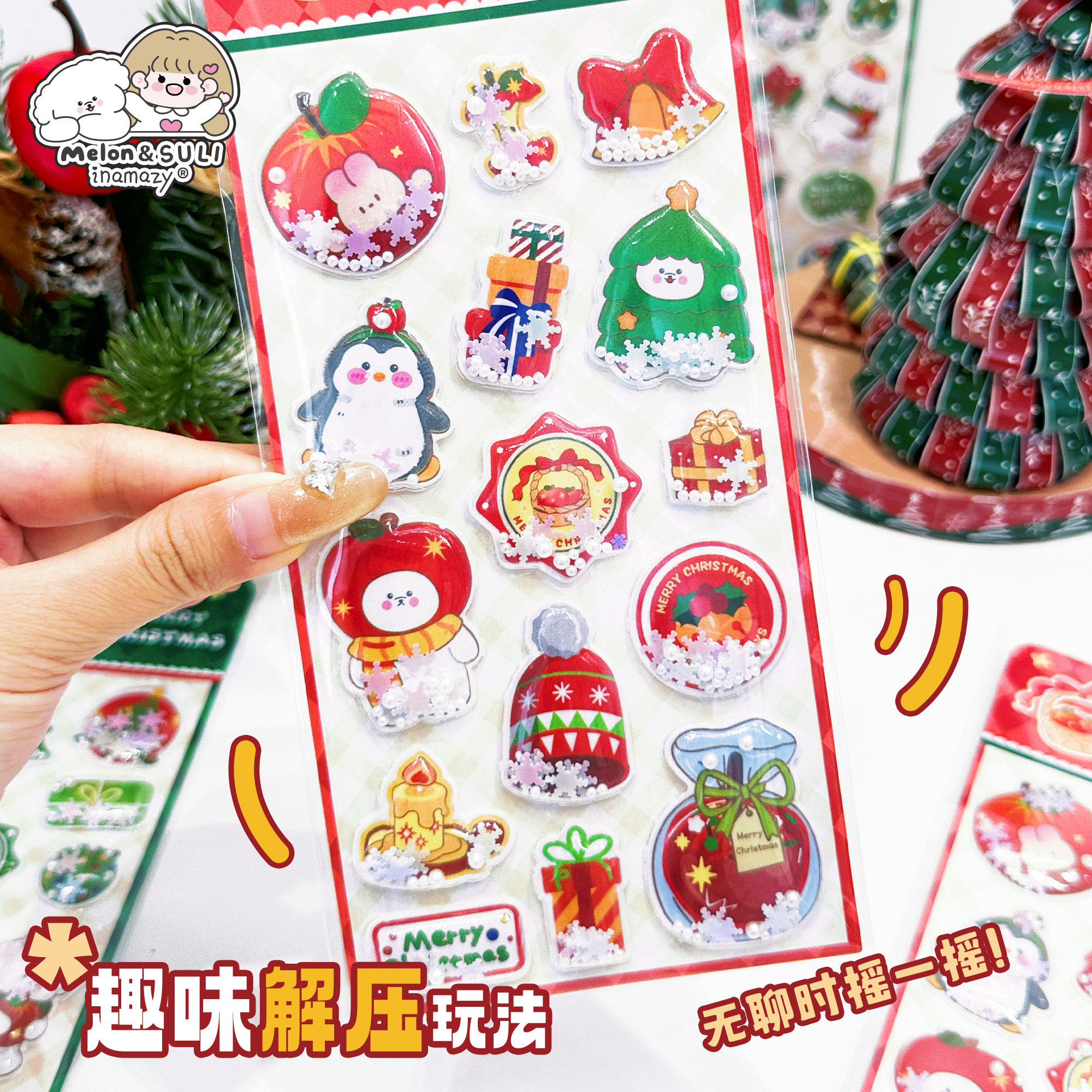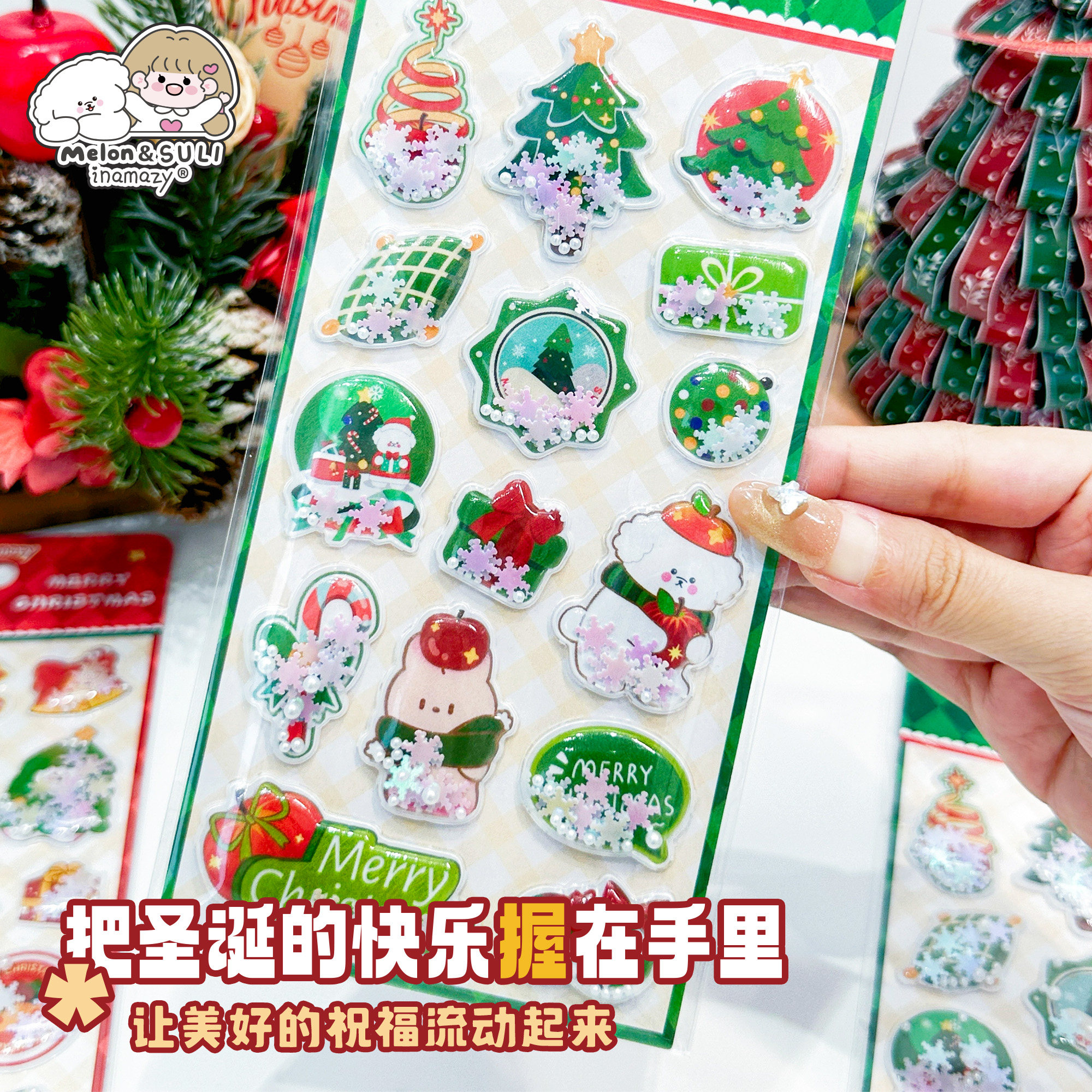 inamzy圣诞摇摇立体贴纸闪粉装饰贴儿童手工DIY节日礼物贴纸