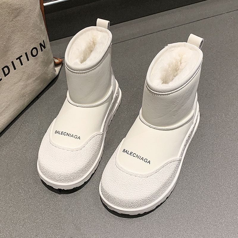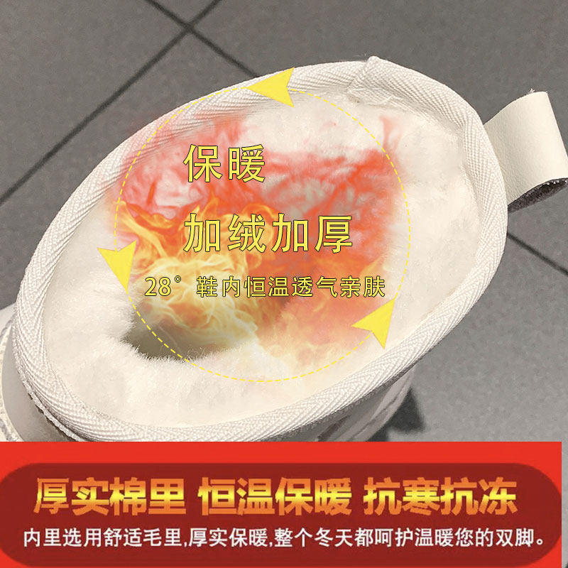 厚底白色雪地靴女冬季加绒加厚东北棉鞋防水皮面零下40度棉靴防滑