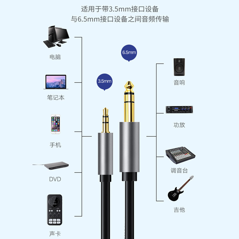 3.5转6.5音频线公对公手机电脑接音响调音台音箱功放电吉他连接线6.35转3.5mm大转小圆孔插头转接线
