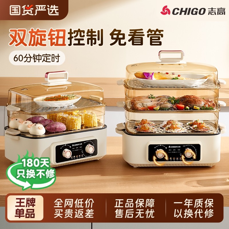 志高家用电蒸锅大容量多功能蒸笼一体电煮锅小型蒸鱼神器三层多层