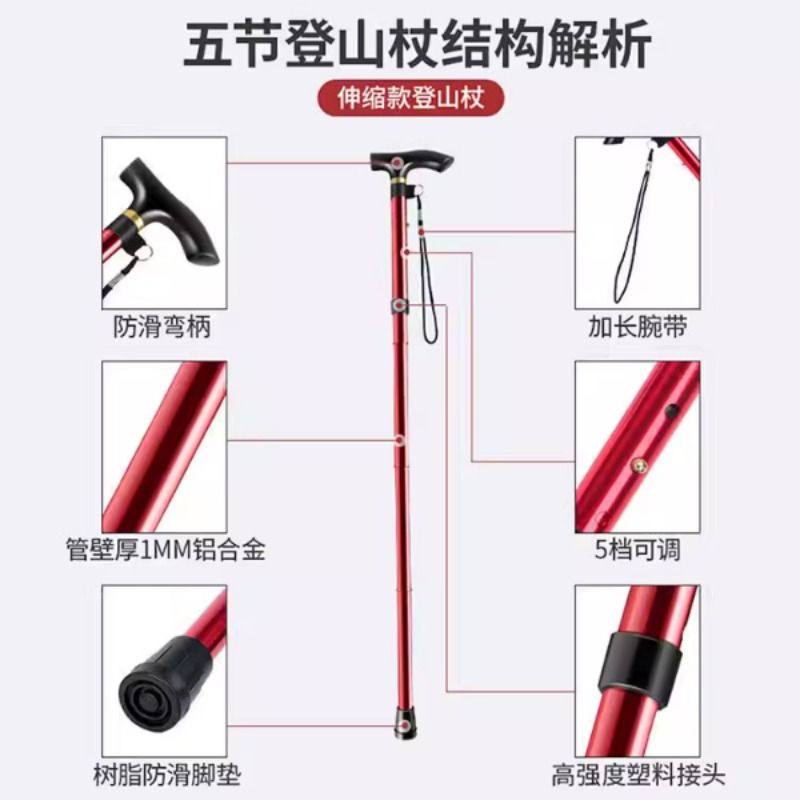 登山杖户外超轻伸缩杖男女爬山徒步装备防滑多功能老人拐杖