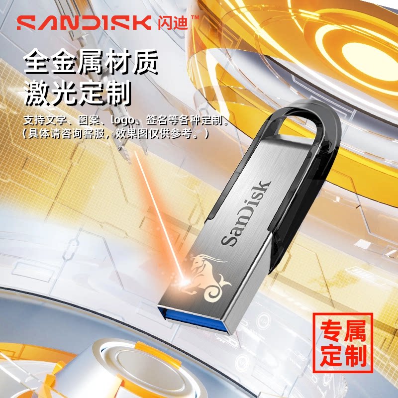 闪迪u盘32g高速金属64g优盘CZ73定制刻字128g加密256g闪存盘512g
