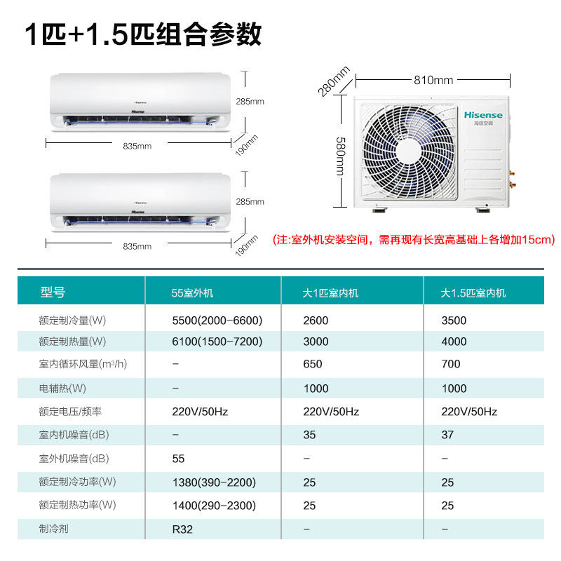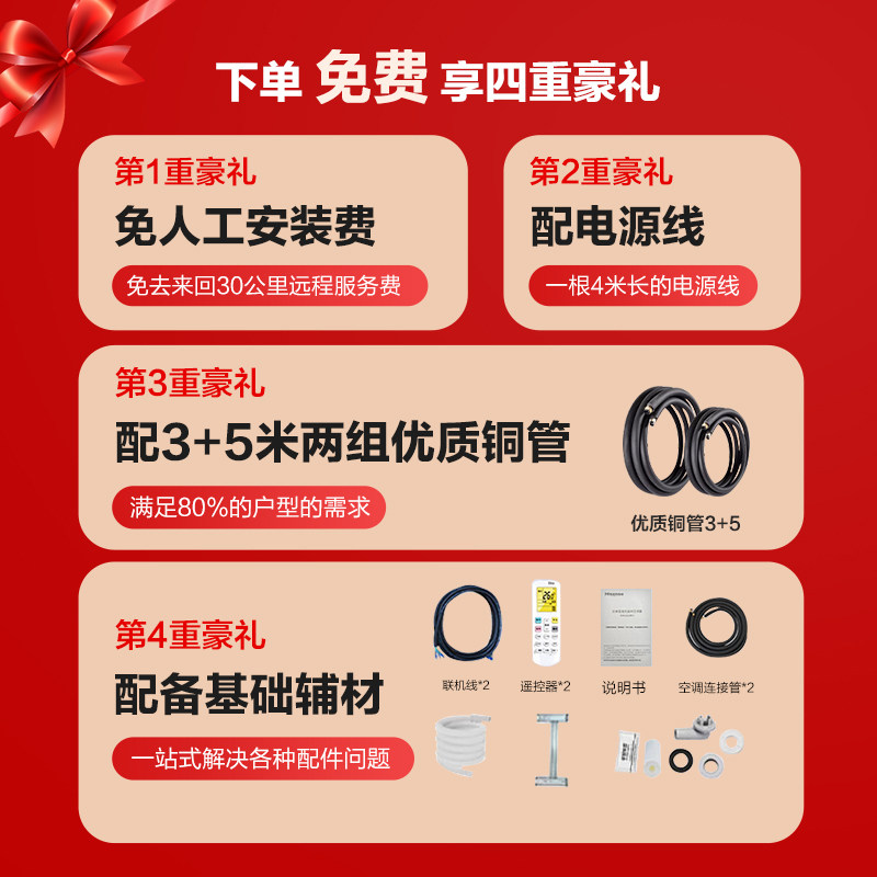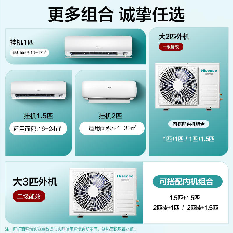 海信一拖二空调挂机1匹1.5匹2匹卧室家用变频中央空调-泰吉