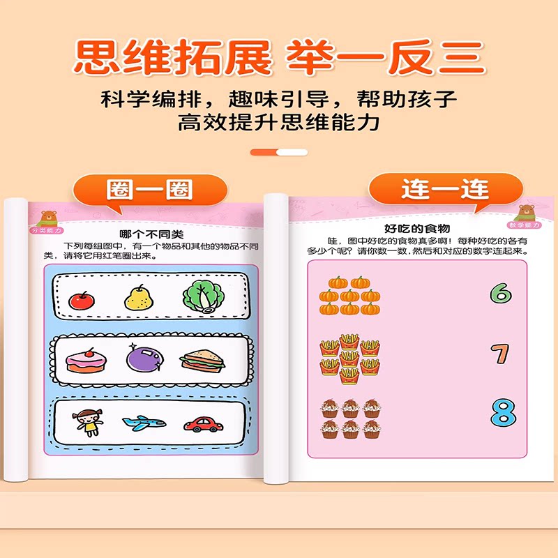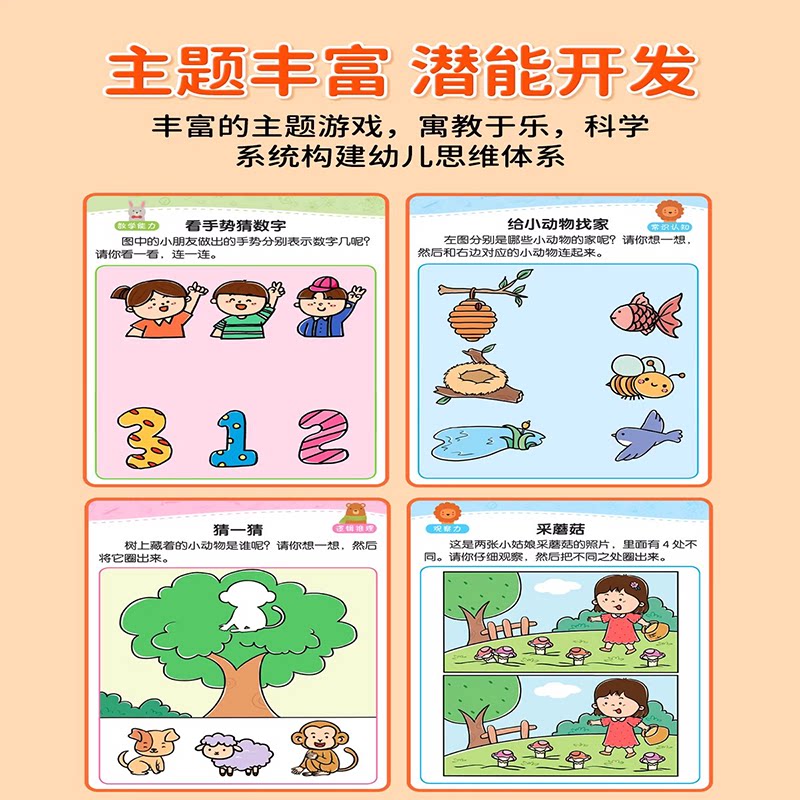 儿童全脑思维训练左右脑开发2-3-4-5-6岁宝宝儿童益智书游戏籍潜能开发幼儿园专注力智力开发迷宫连线数学启蒙早教认知绘本
