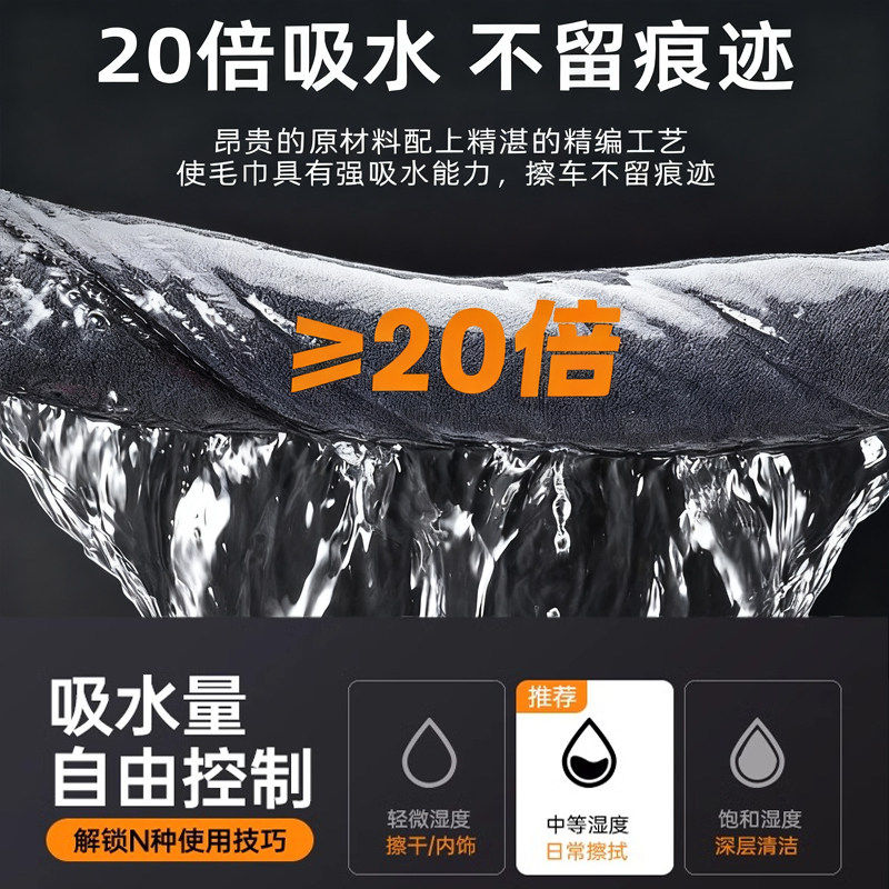 高级洗车毛巾擦车布专用吸水车载内饰加厚无痕抹布不掉毛汽车用品