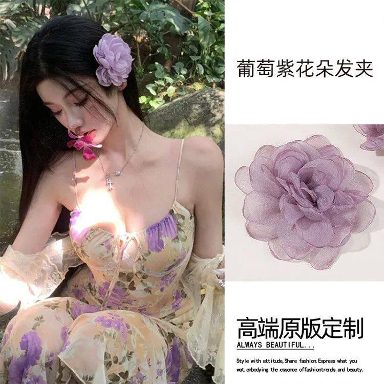 2025新款紫色花朵发夹女侧边头饰发卡玫瑰花发饰海边度假头花发饰