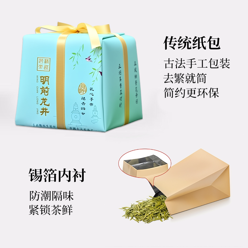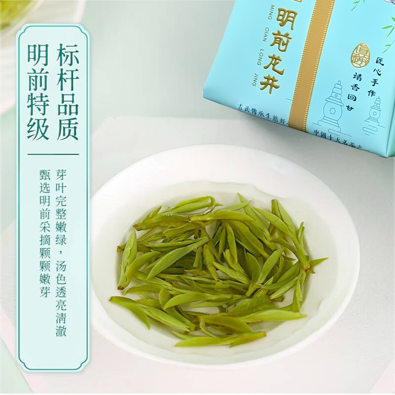 西湖工夫杭州特产明前龙井绿茶叶礼盒装送长辈生日礼物过年走亲戚
