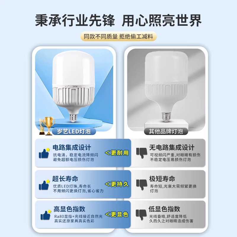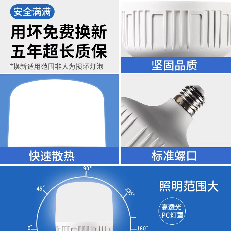 led灯泡超亮节能灯白光家用省电E27大螺口客厅室内灯照明圆柱形灯